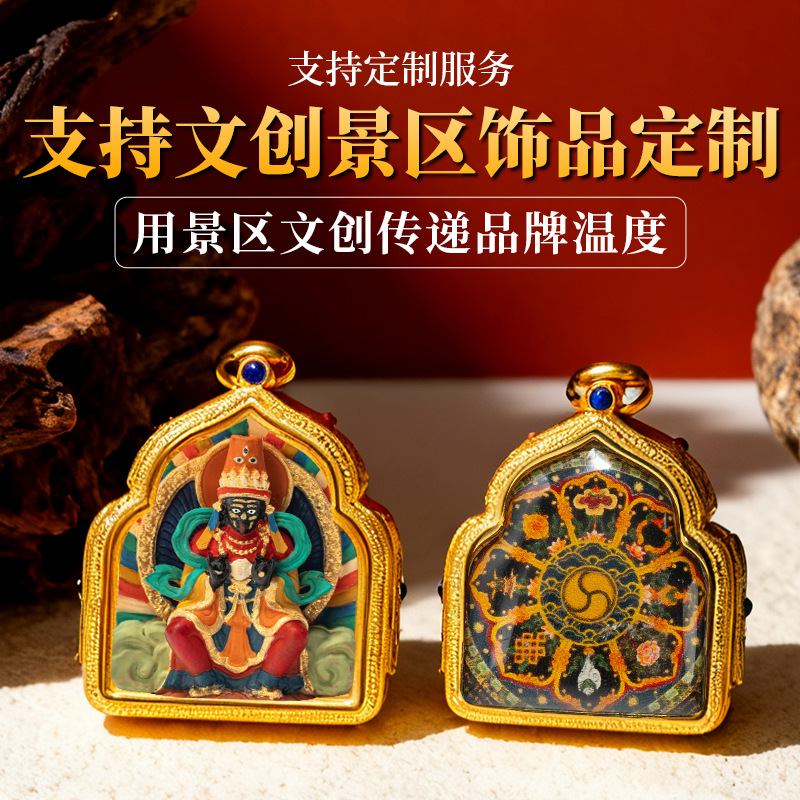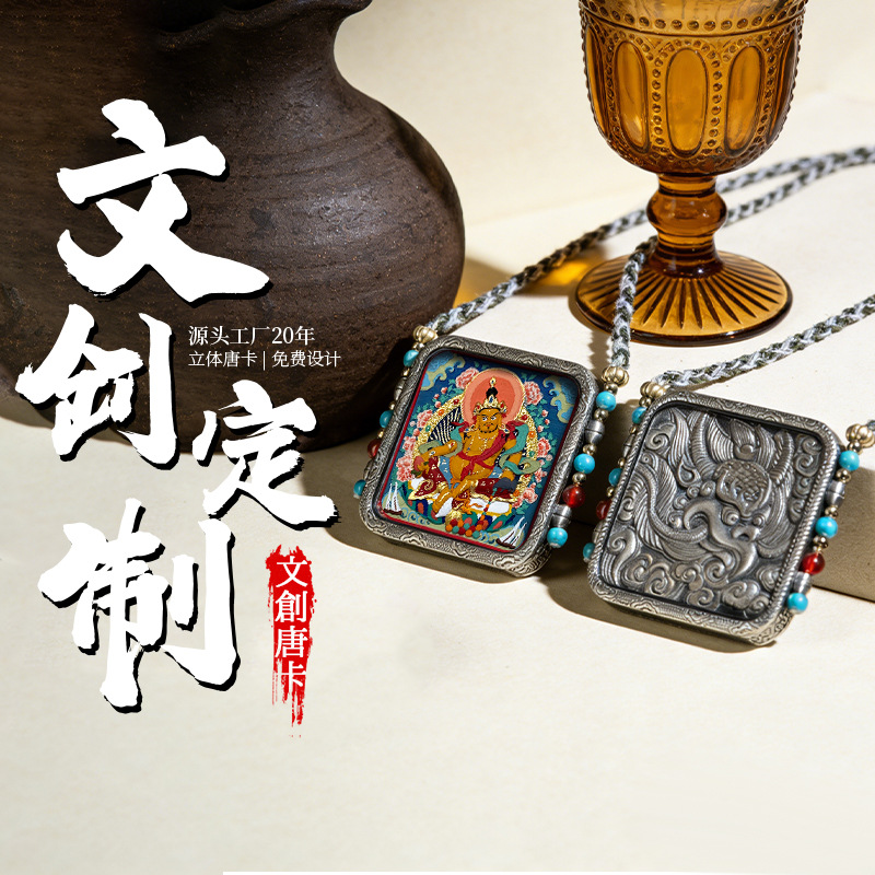 文创景区手绘擦擦唐卡吊坠黄财绿度母五爷金翅大鹏鸟立体唐卡项链