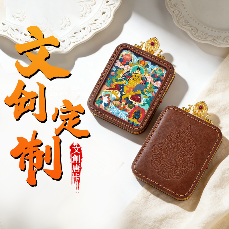 文创擦擦唐卡吊坠藏式扎基拉姆绿度母五爷黄财可定图手绘唐卡配饰