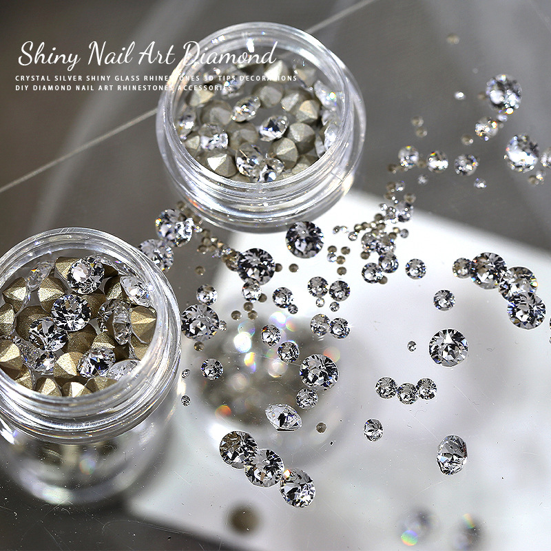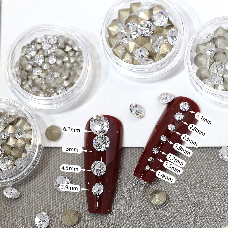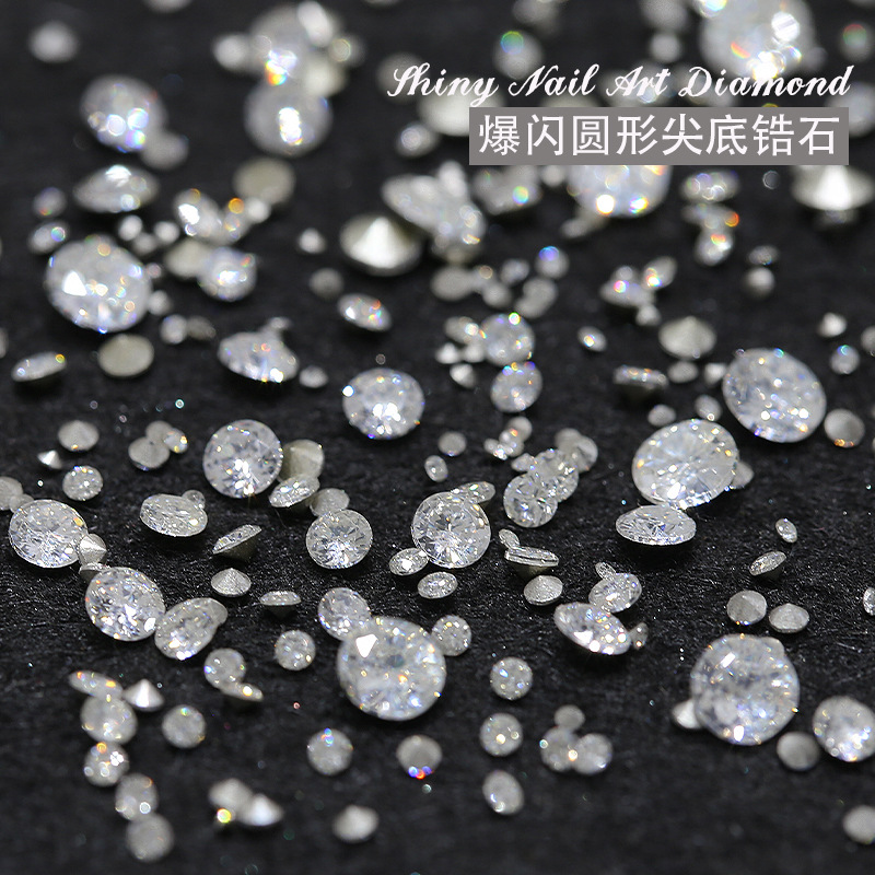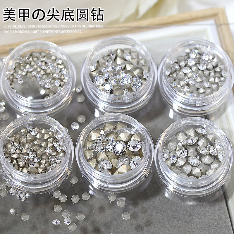 卸売りの円形の尖った底のジルコンのネイルアクセサリーは、白い銀の底の小さな丸いドリルの隙間を埋めて、爪の小さな装飾をドリルします。