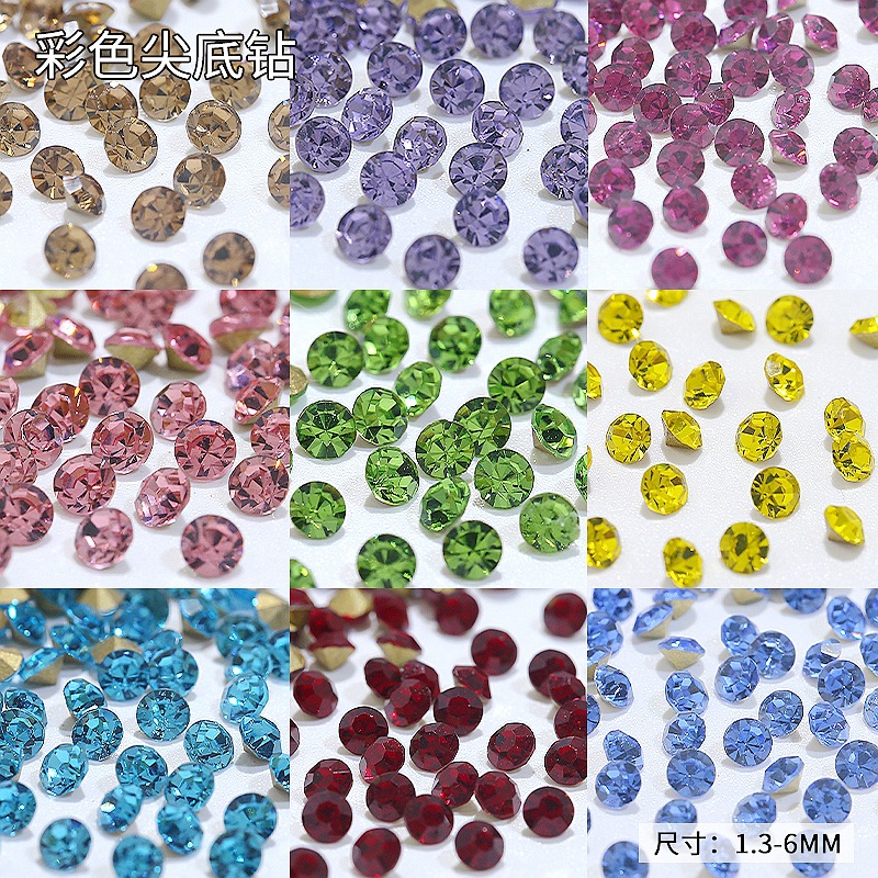 オーストリア産尖底ダイヤモンドジュエリー、華麗なネイルアート用ダイヤモンド、クリスタルガラスの重ねダイヤモンド、ネイルデコレーション、軽贅沢スタイル、幻想的な色彩