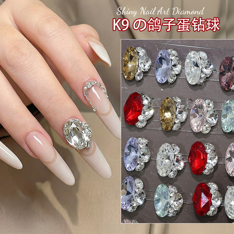 K9鸽子蛋无底托堆钻美甲饰品椭圆手工成品大钻球diy指甲配饰批发