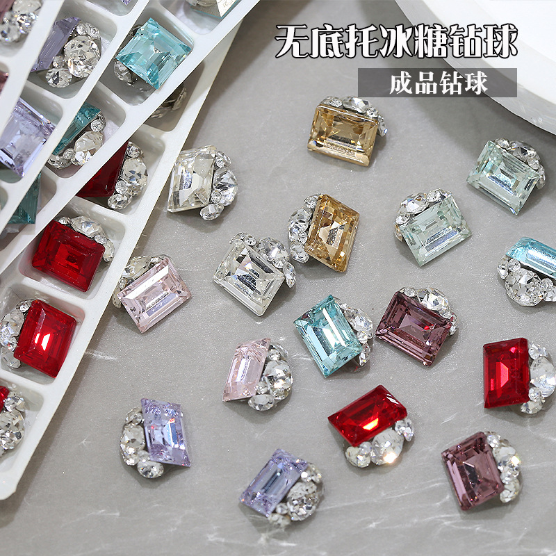 K9长方直角堆钻美甲饰品无底托成品手工冰糖钻球配件指甲装饰批发
