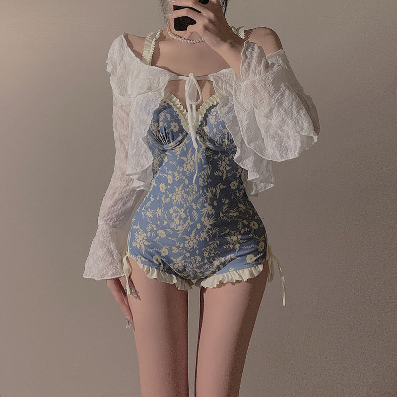 2024新型保守四点セットビキニ分割スカート式水着女性長袖温泉純欲風小胸