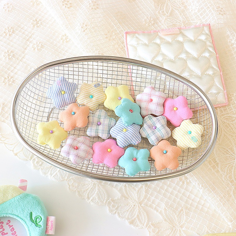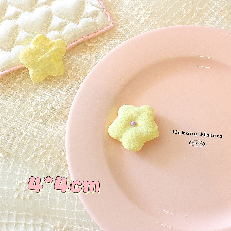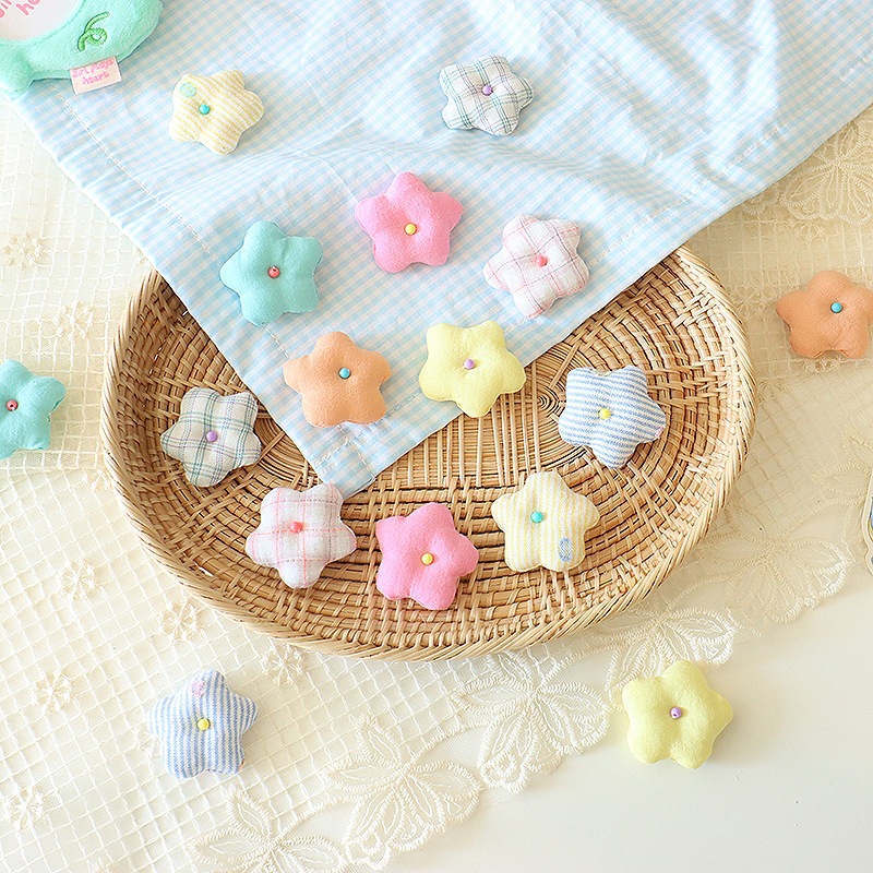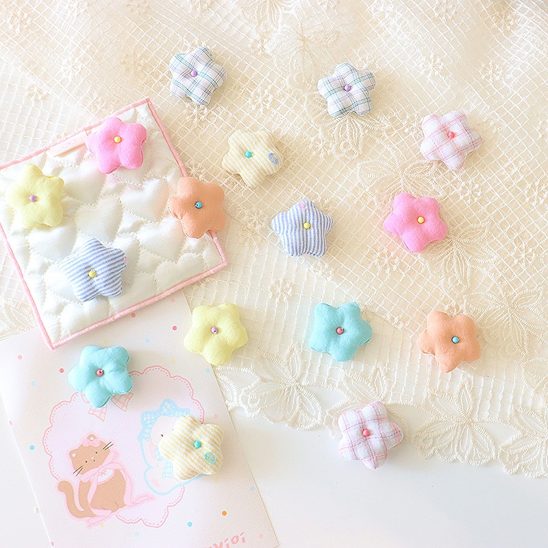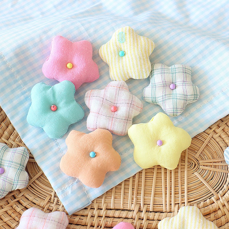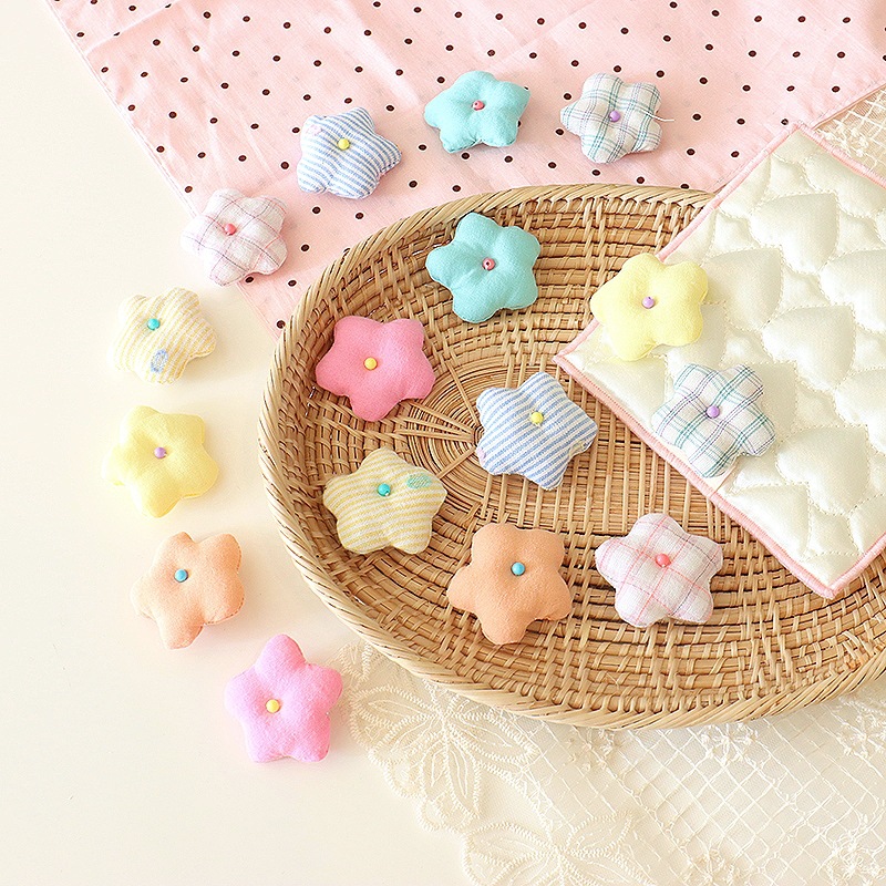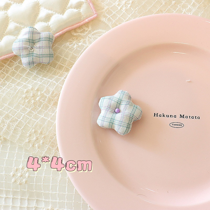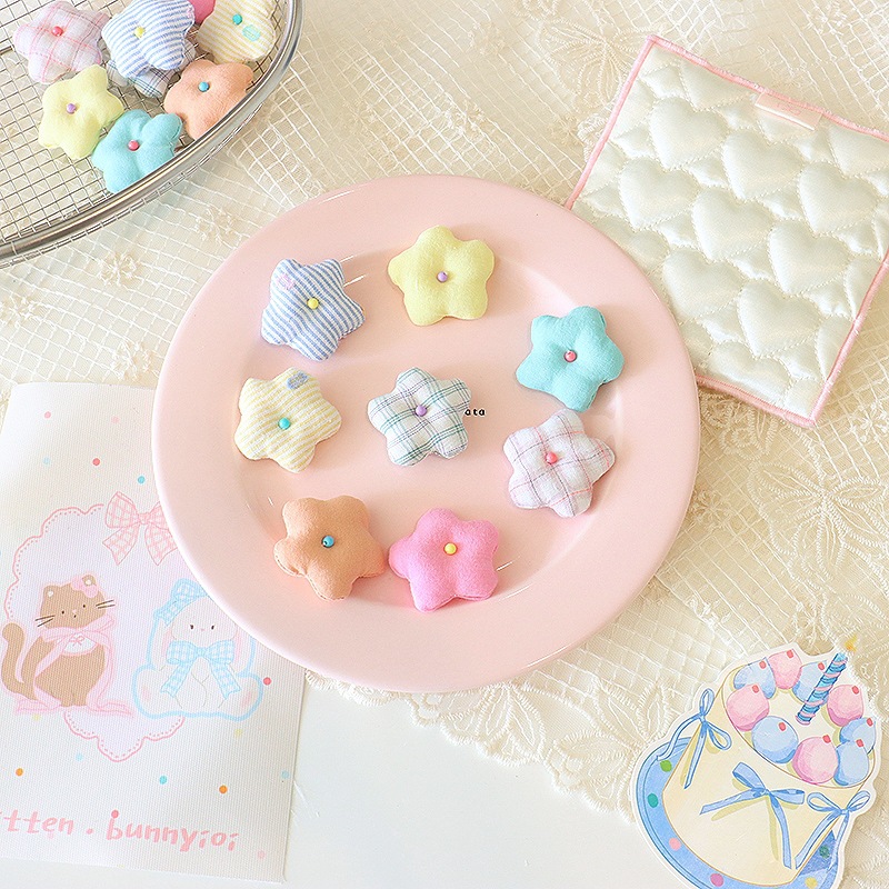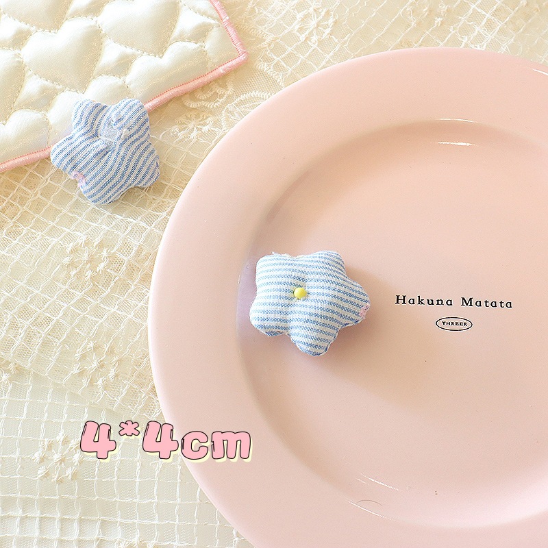 韩系小清新花朵diy头饰配件4cm布艺格纹小花胸针鞋帽服饰辅料批发
