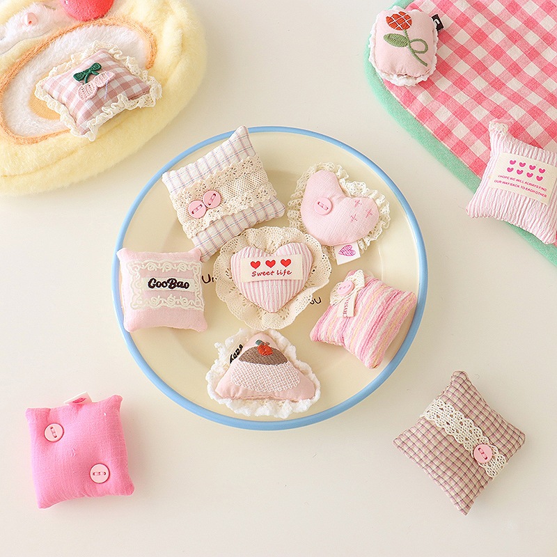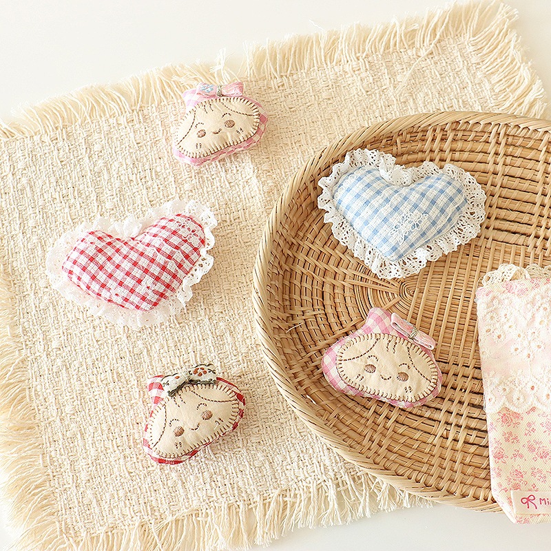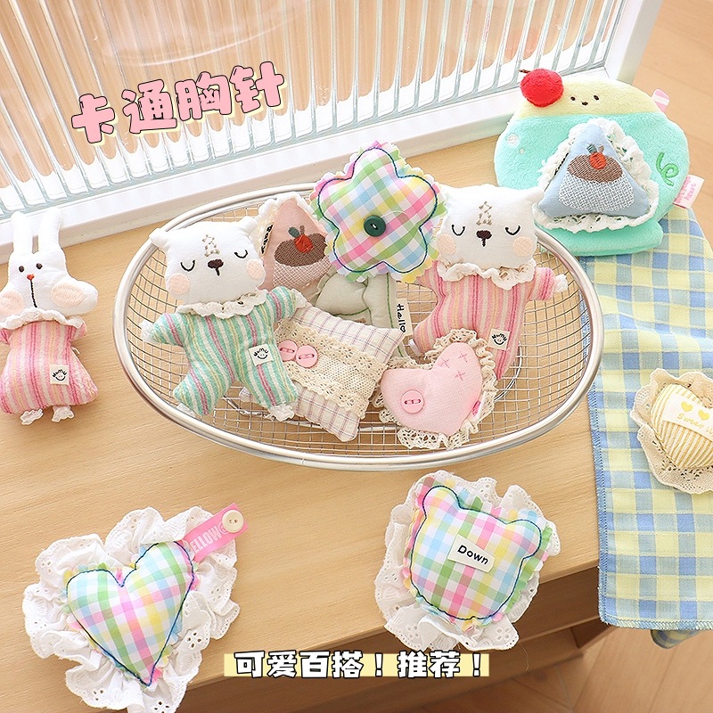 新款甜美蕾丝爱心韩系格纹方块布艺胸针配饰百搭发饰包包辅料配件