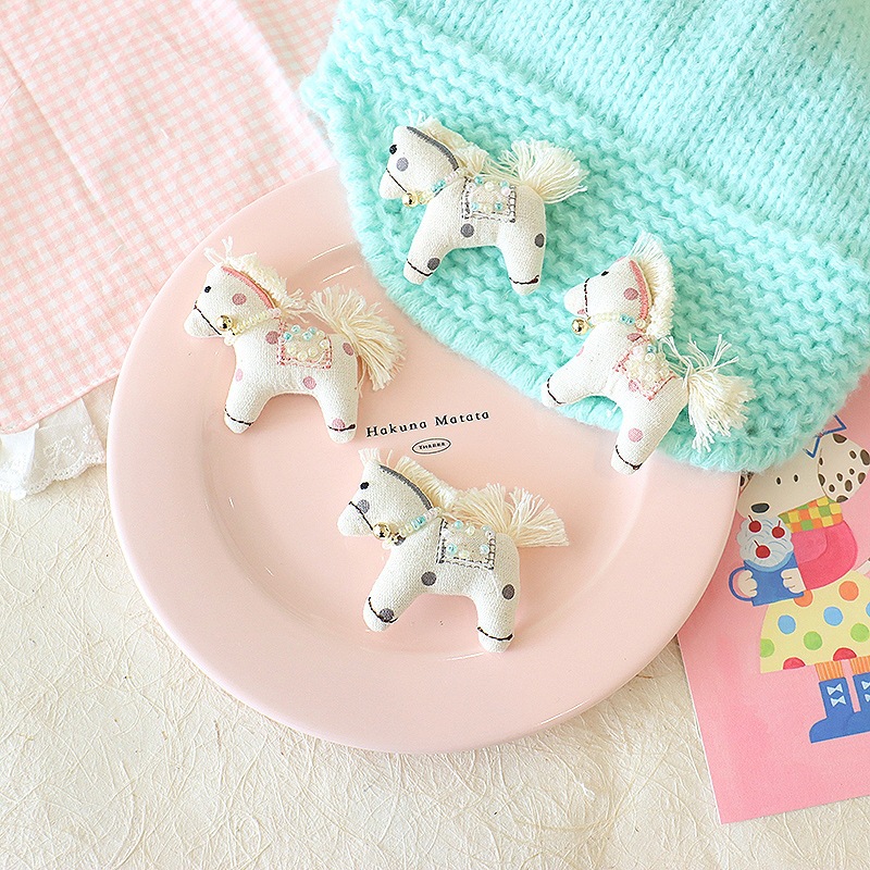 春季新款创意棉麻布艺小马创意百搭diy发饰配件马年胸针装饰挂件