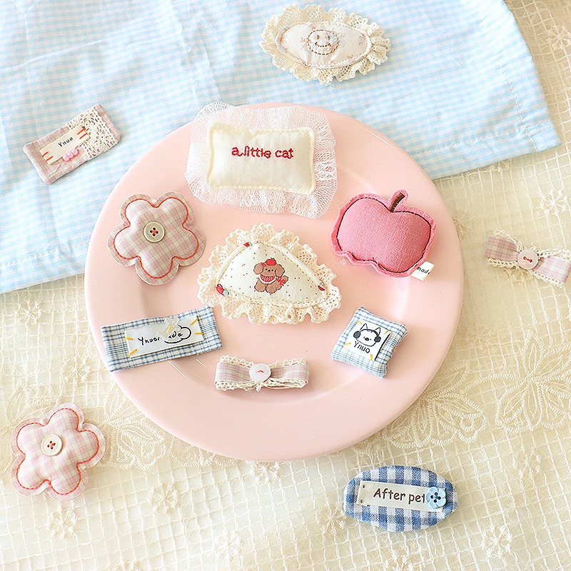 韩系甜美可爱手作充棉蕾丝碎花小熊布艺苹果刺绣格纹小花发夹配饰