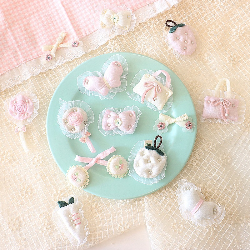 韩系甜美花边格子爱心别针配饰可爱小女孩头饰鞋袜箱包辅料配件