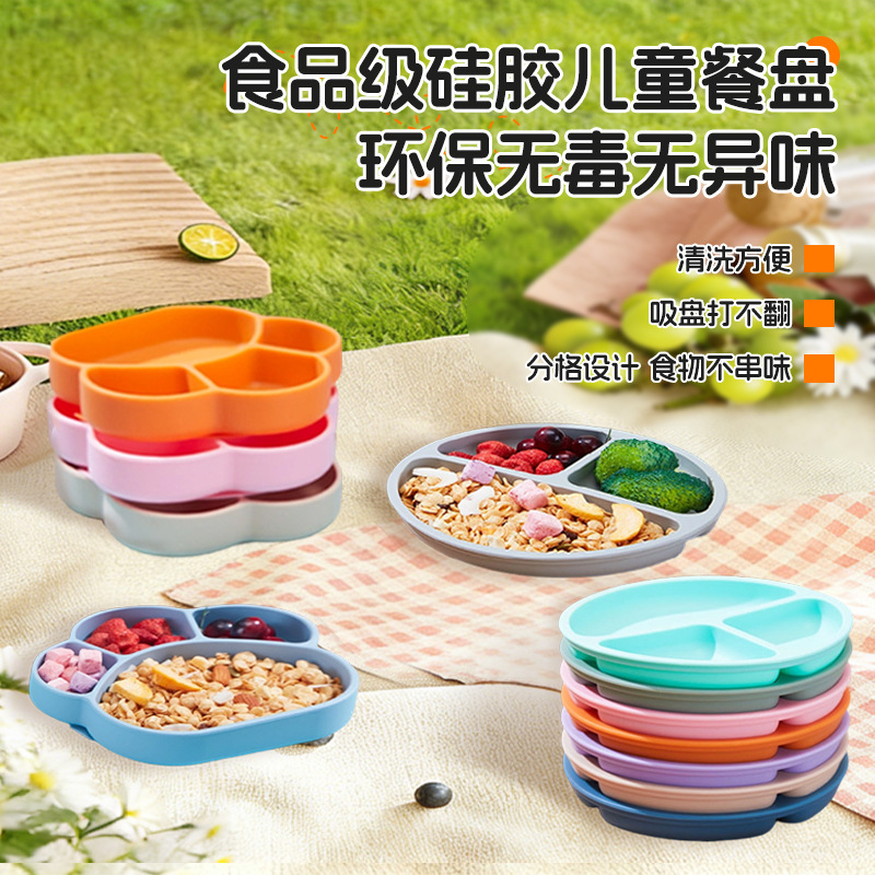 严选宝宝硅胶餐盘婴儿吸盘式食品级硅胶辅食碗儿童分格盘吃饭餐具