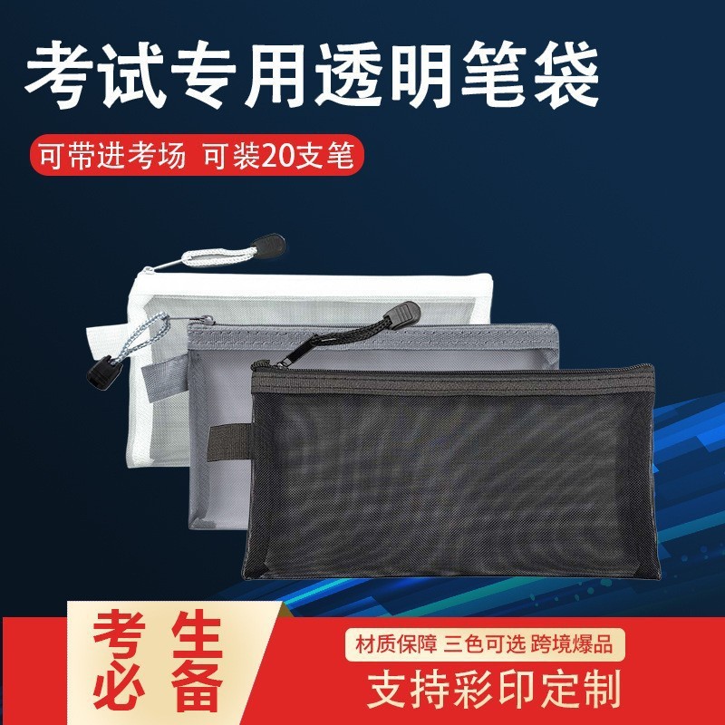 スポット卸売りシンプル透明ネット筆袋学生試験収納専用携帯筆袋大容量鉛筆袋