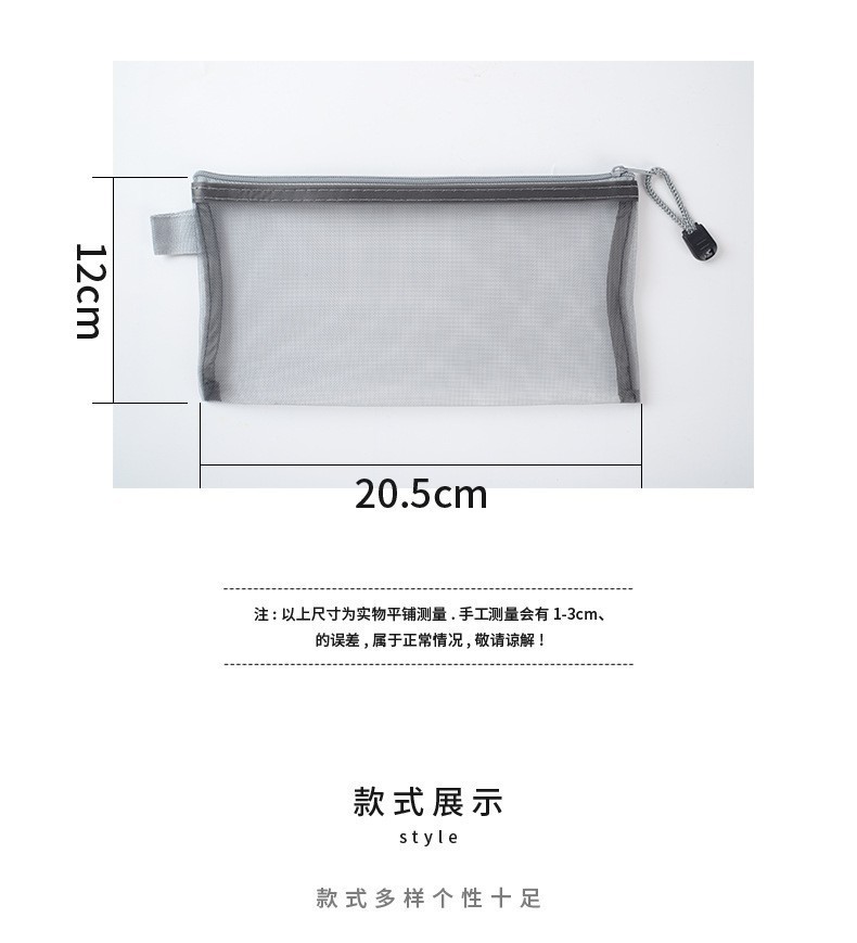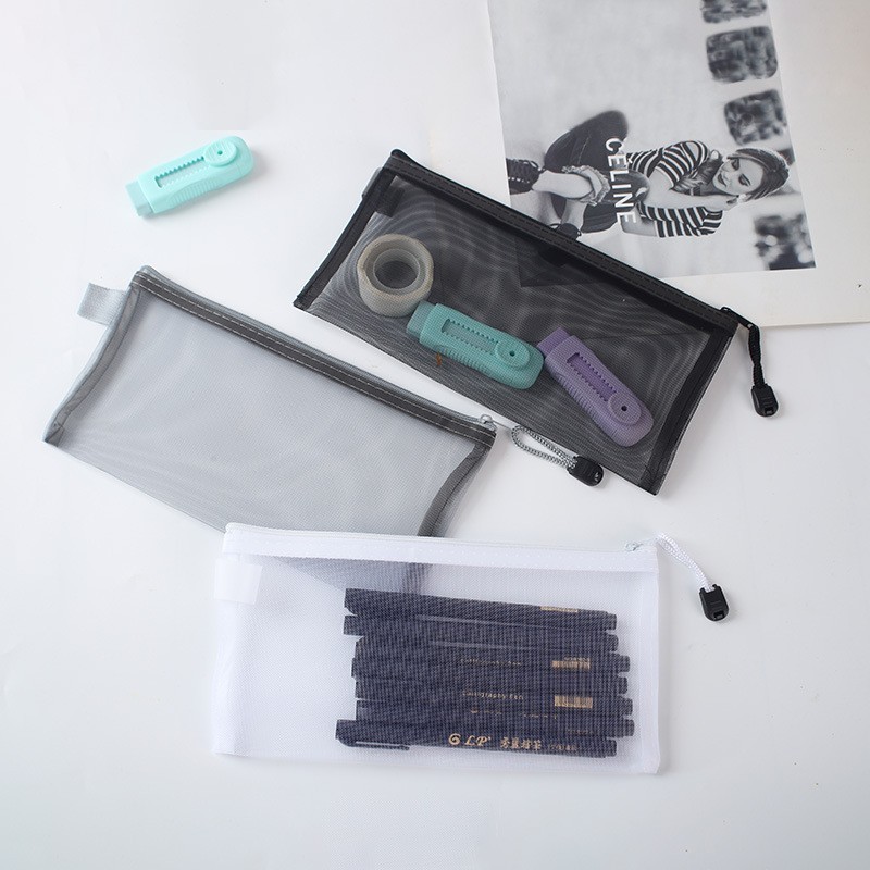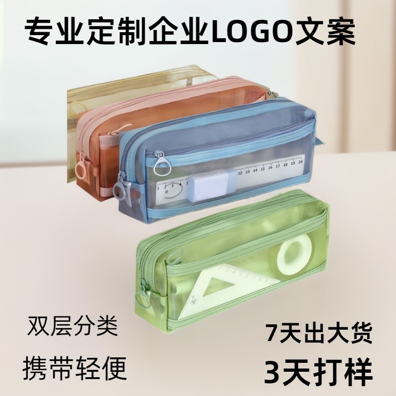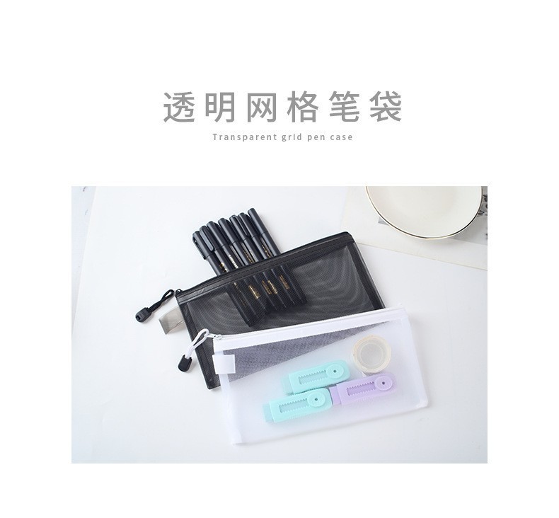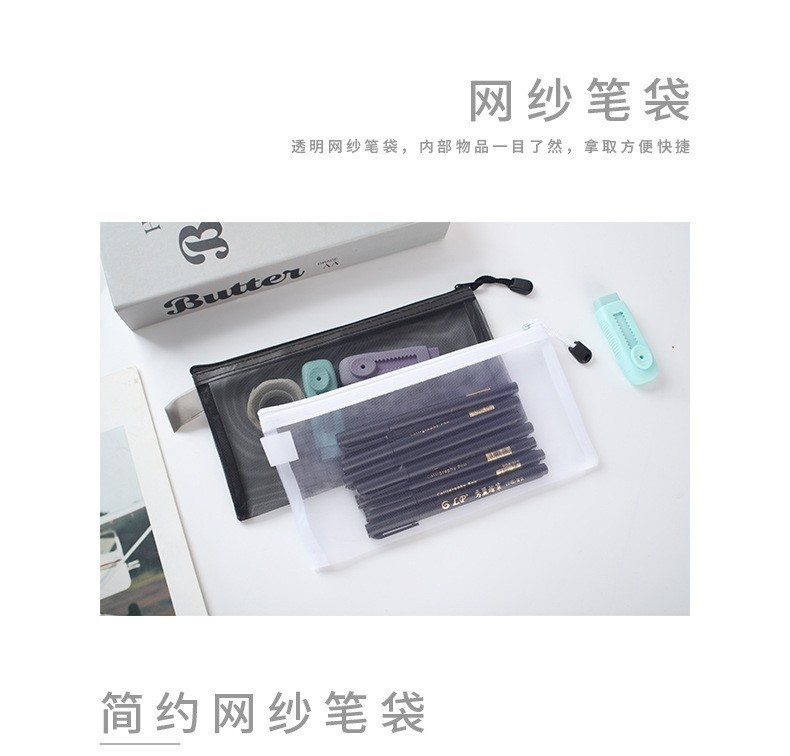 現物卸売りナイロン網紗文房具袋シンプル透明筆袋試験学生大容量女子筆袋