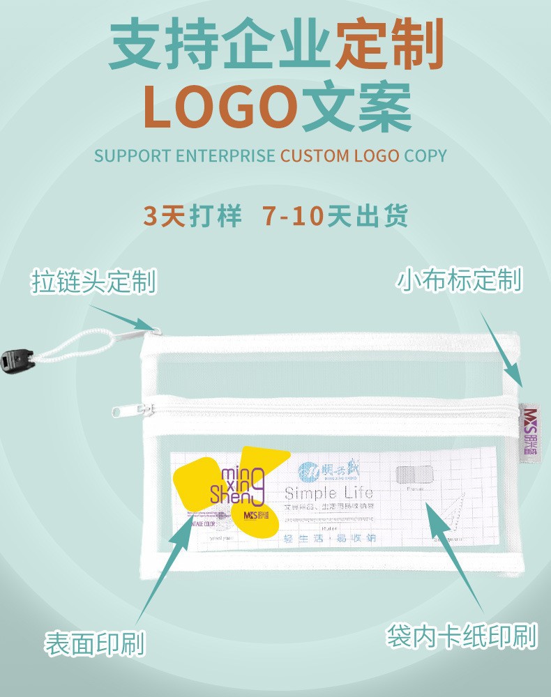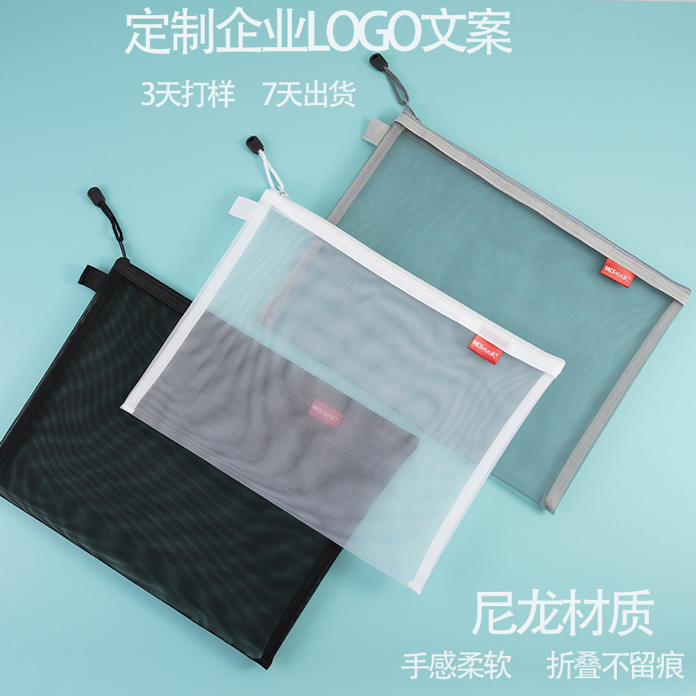 A4透明尼龙网纱拉链袋办公资料档案袋学生试卷课本分类文件袋印字
