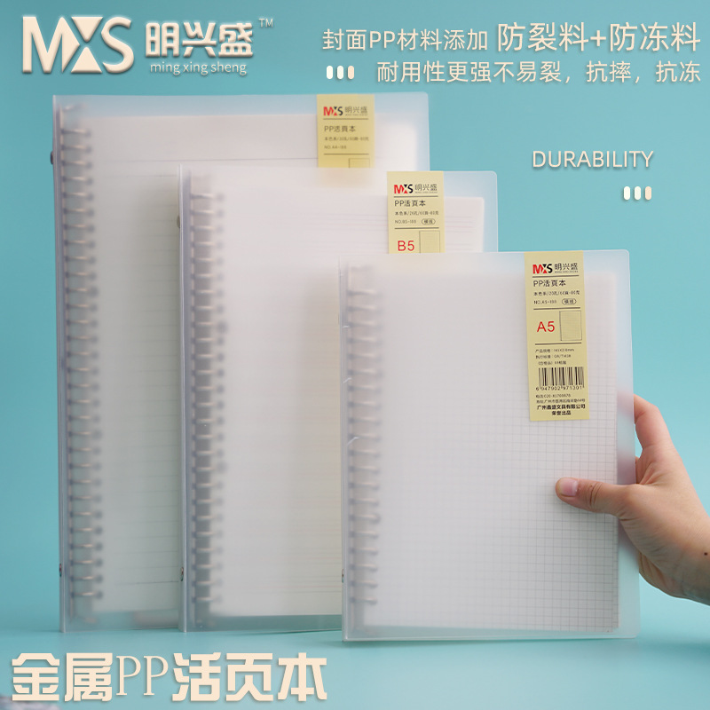 B5サイズ、取り外し可能な26穴透明リングノート、学生向け厚紙リングノート、A5罫線・無地替芯卸売