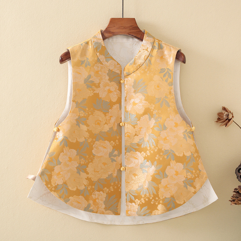 新中国式国風馬甲新作春金魚ジャカード気質唐装レトロ国潮高級感重ね着馬挟み