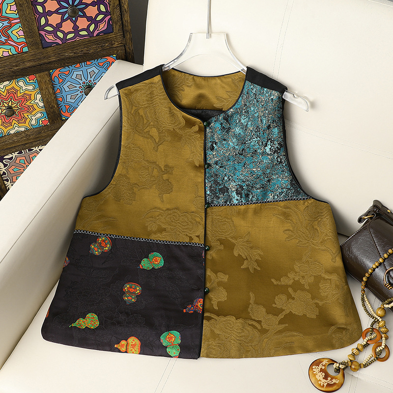 新中式国风复古提花马甲春秋高级感拼色设计款马夹坎肩外穿内搭款