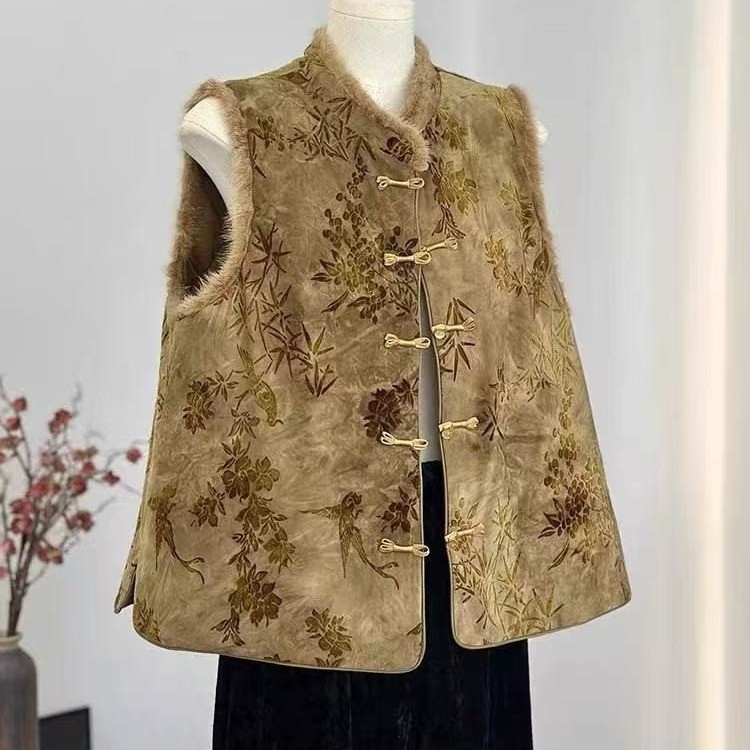 时尚气质重工刺绣提花马甲新中式直襟盘扣坎肩气质轻奢风休闲马夹