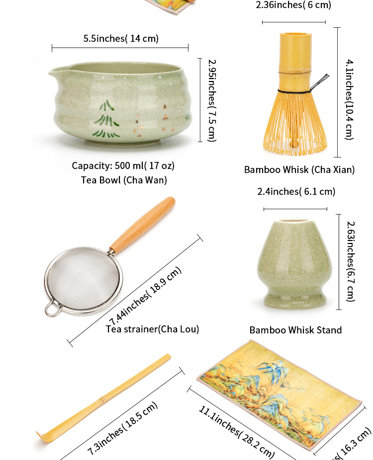 规格 海浪纹抹茶七件套-叶尖嘴,海浪纹抹茶四件套-叶尖嘴,抹茶绿四件套-春日田园,抹茶白色四件套-春日田园,抹茶绿色四件套-圣诞树,樱花瓣四件套-紫色,樱花瓣四件套-粉色,抹茶粉-樱花,彩盒礼盒(空礼盒),牛皮纸礼盒