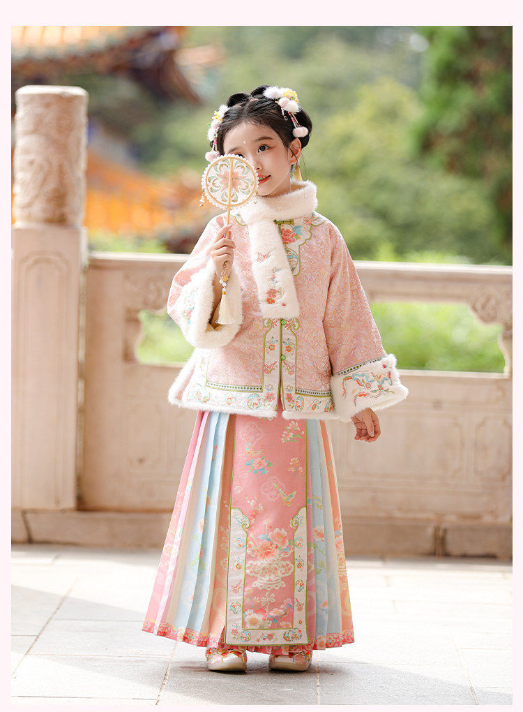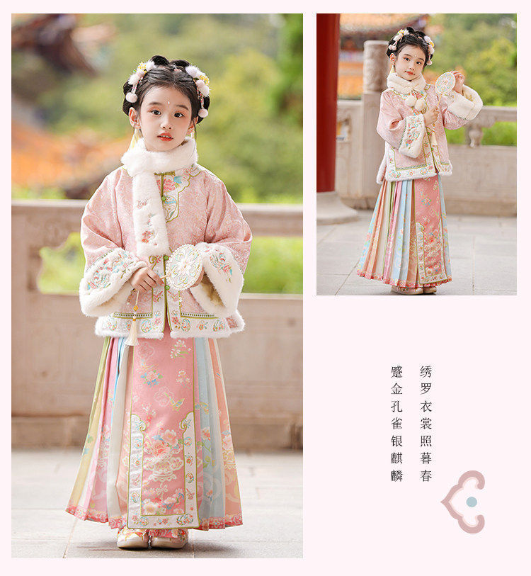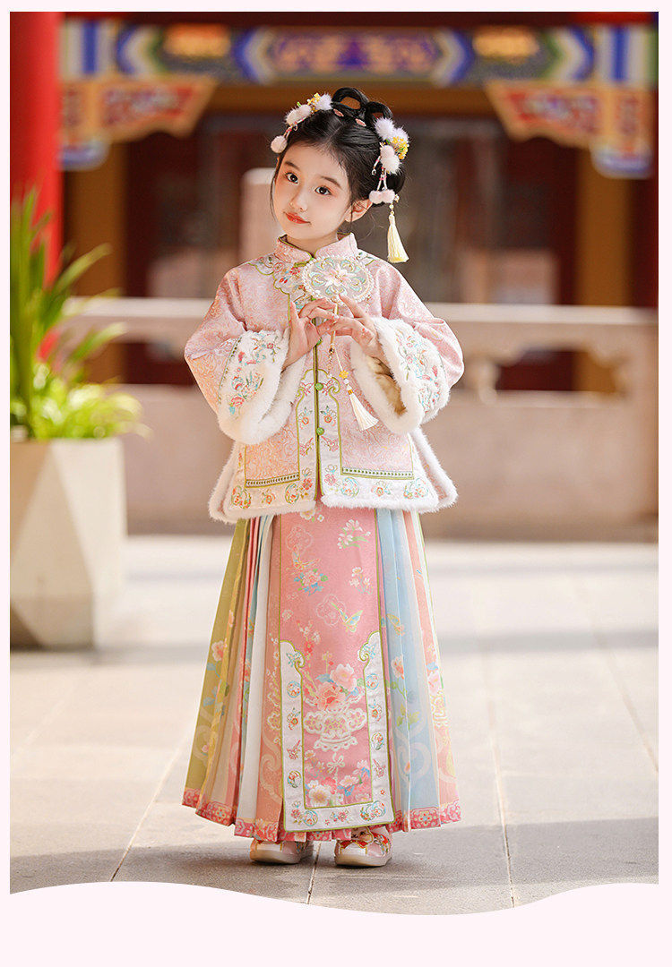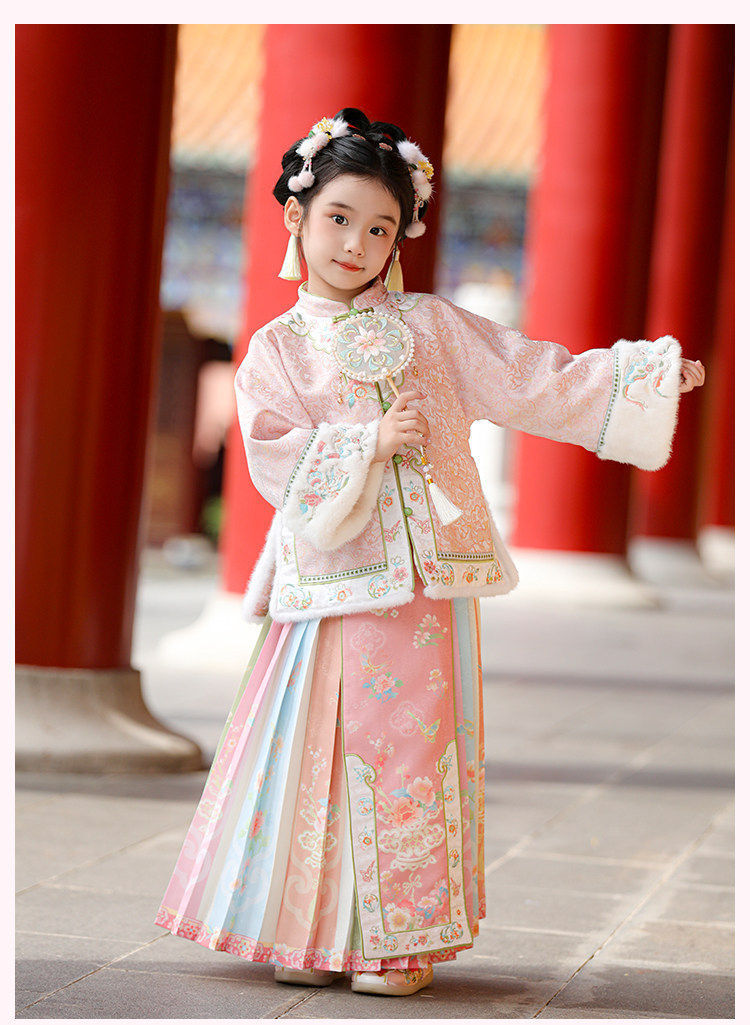 汉服女童2026冬款儿童新中式加厚明制马面裙套装小女孩超仙拜年服