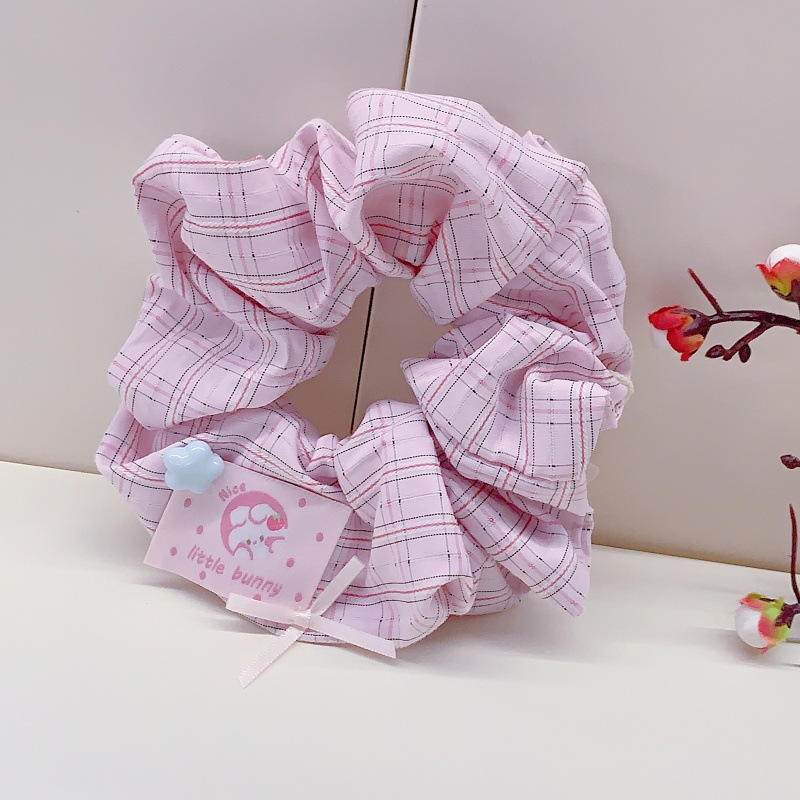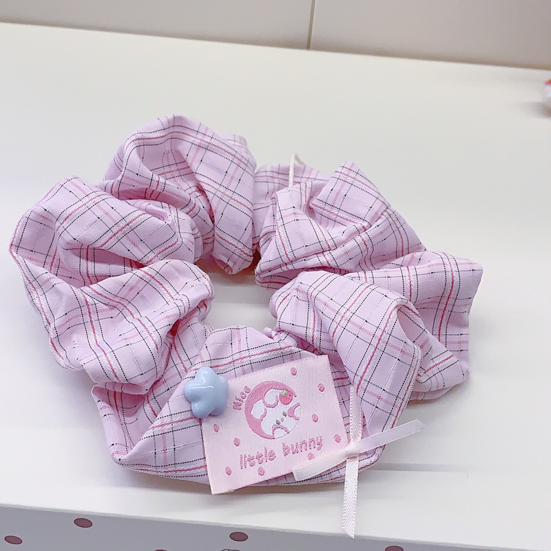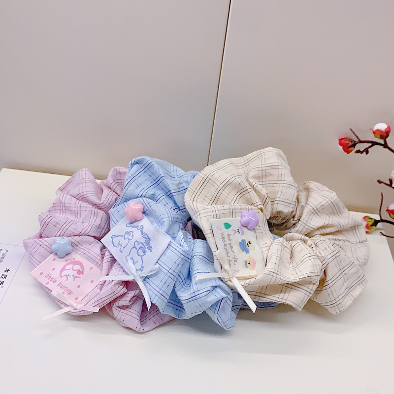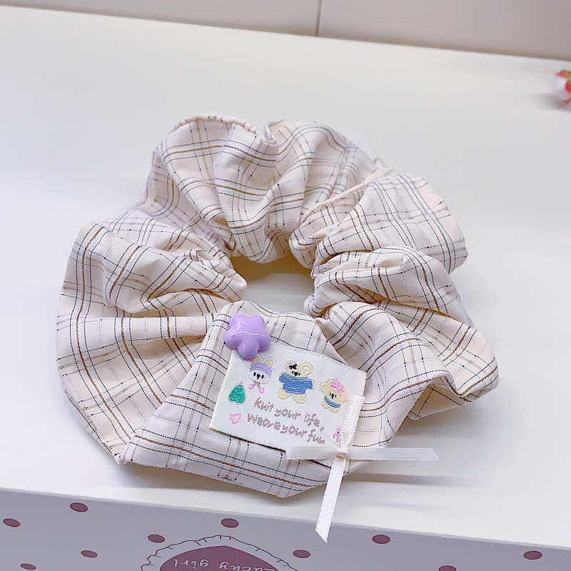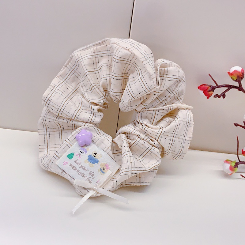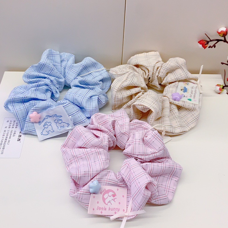 春夏小清新格纹大号大肠圈缀五角星布标学生可爱发圈马尾圈头扎