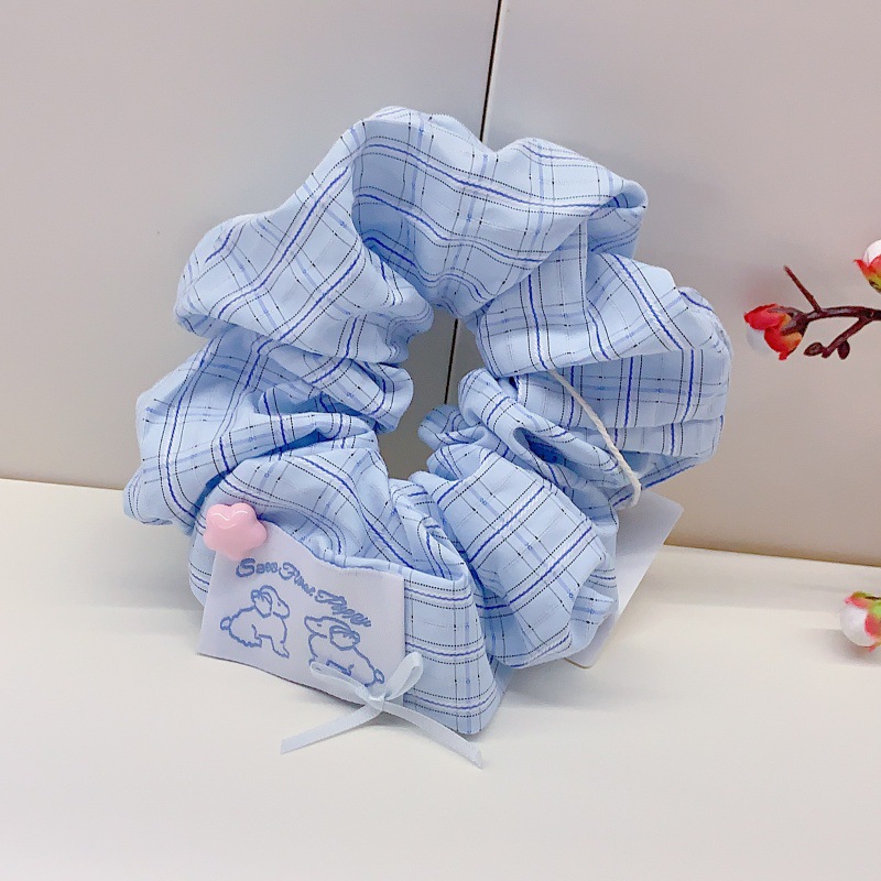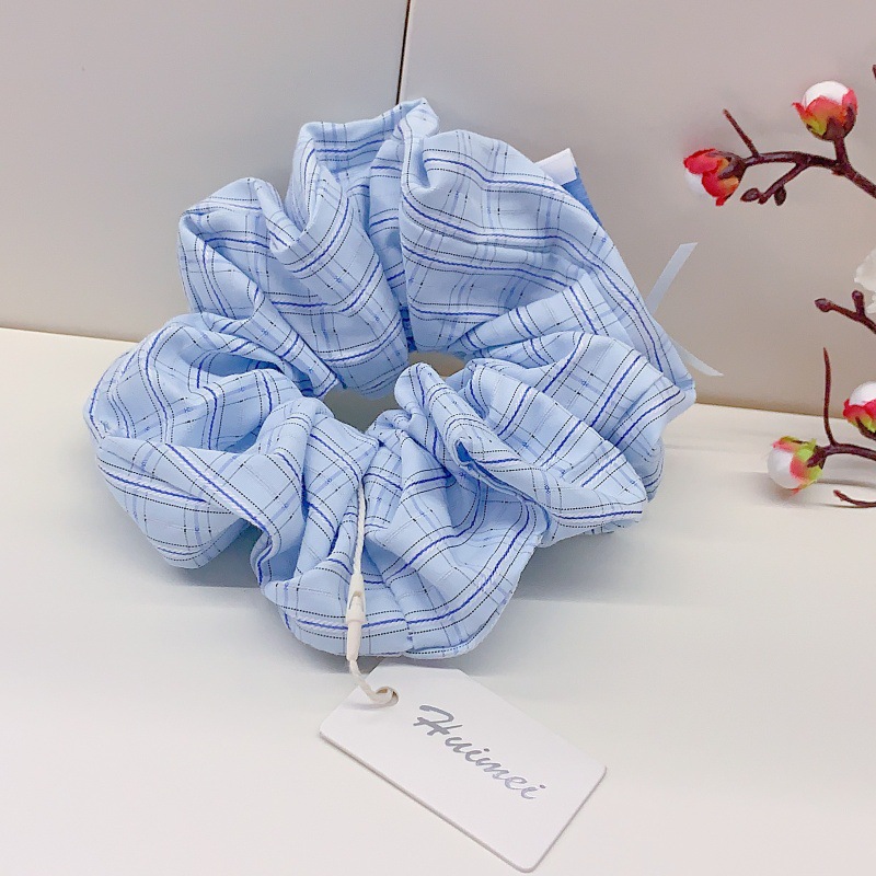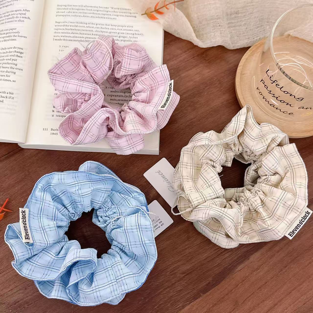新款发饰批发少女学生小清新浅色格纹缀布标大肠圈布圈马尾圈头扎