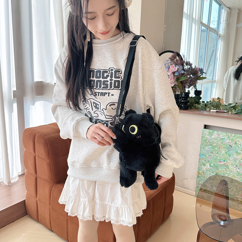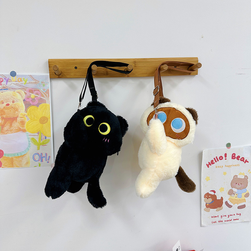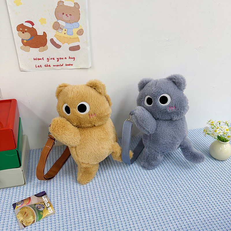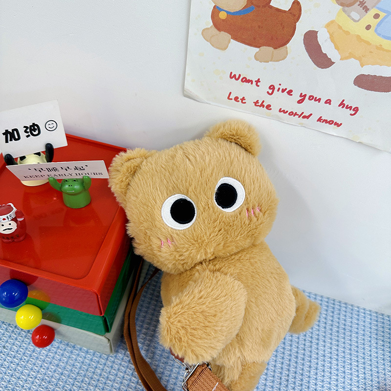 厂家直销小猫咪趴趴斜跨毛绒玩具包玩偶零钱包大容量少女心单肩包