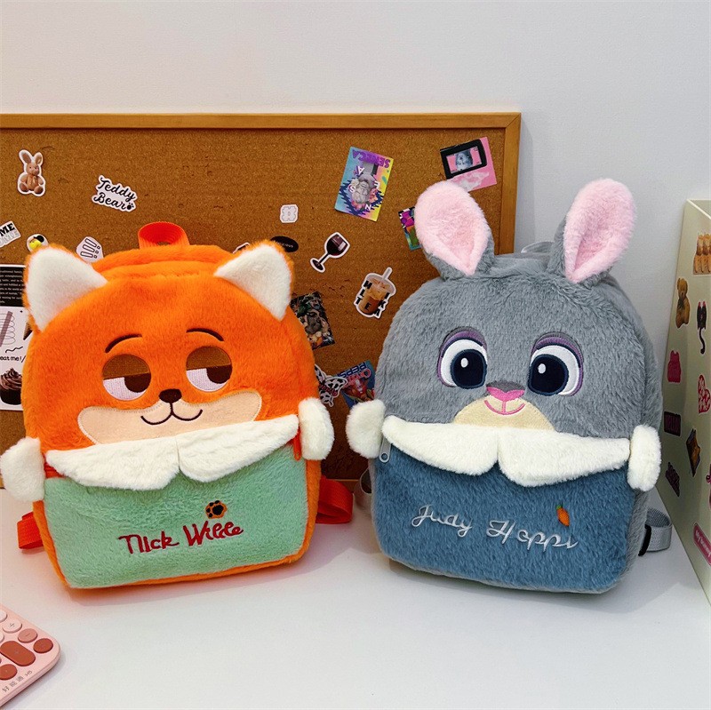 新款跨境卡通狐狸尼克兔子朱迪毛绒双肩包包大容量学生儿童小书包
