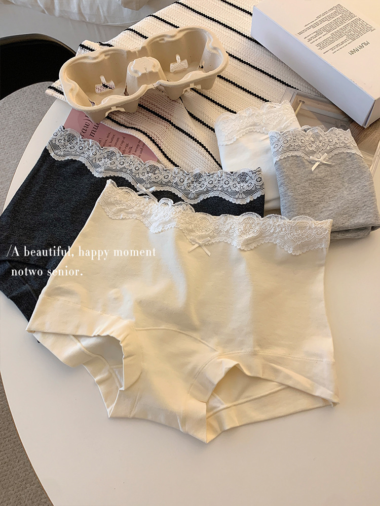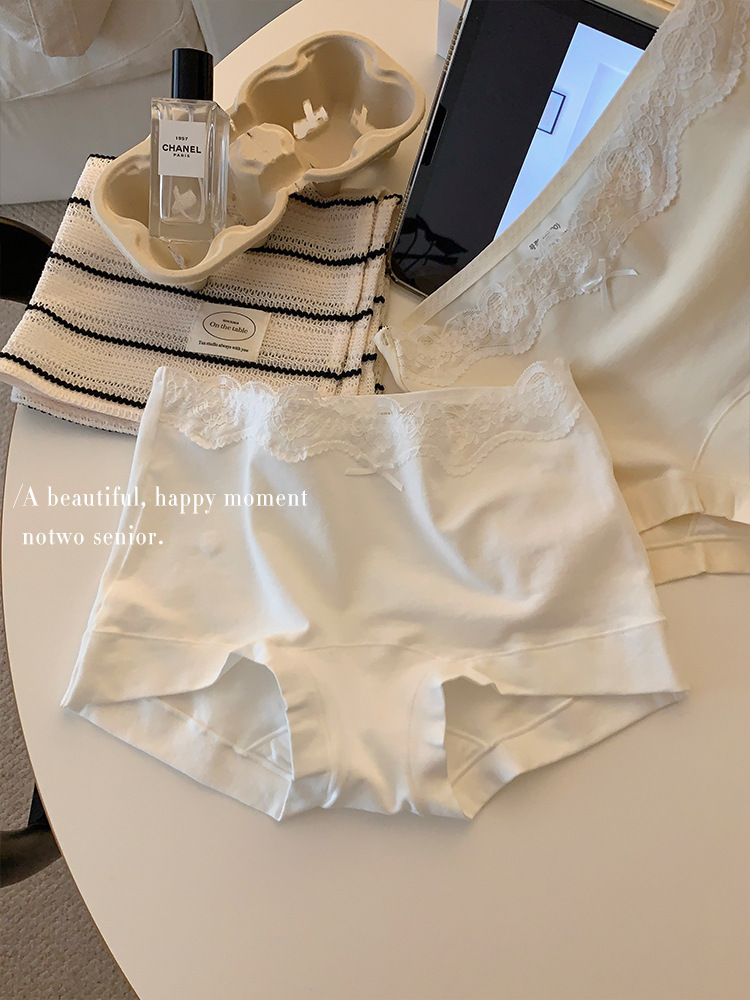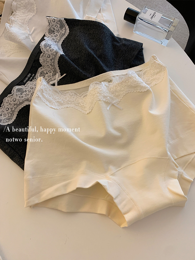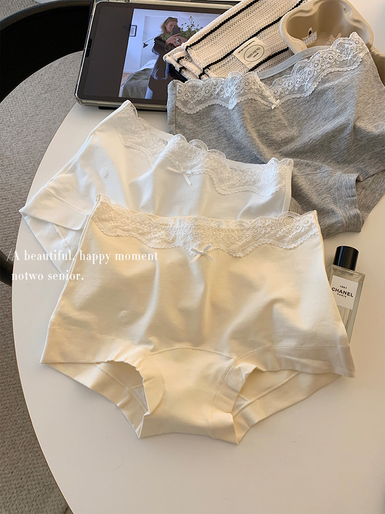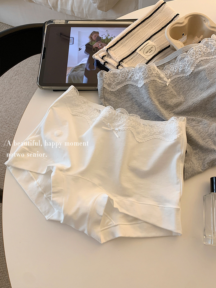 透气蕾丝女内裤平角内裤简约风薄棉纯棉蕾丝蝴蝶结加长加宽裆内裤
