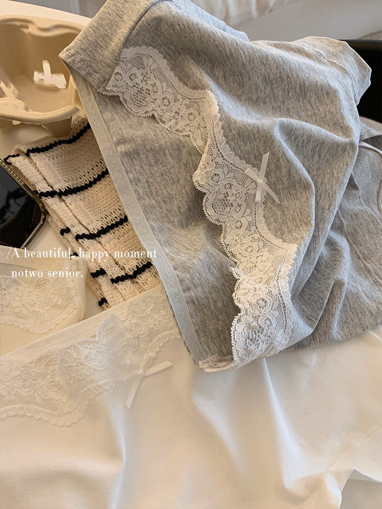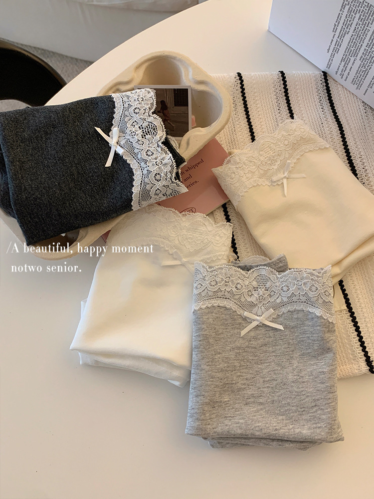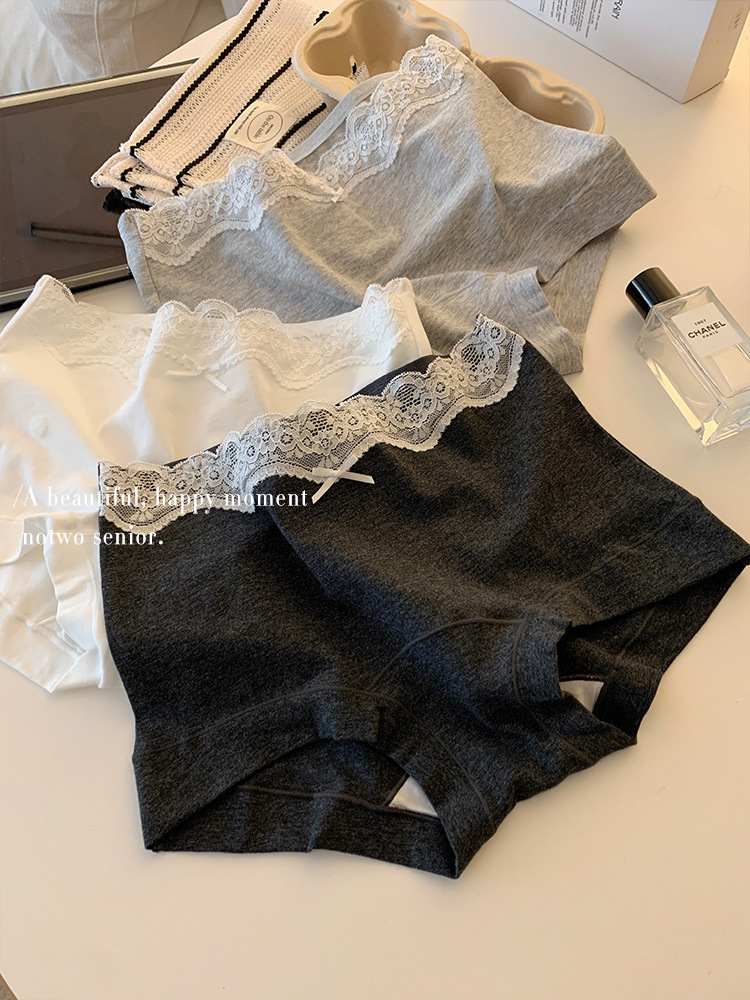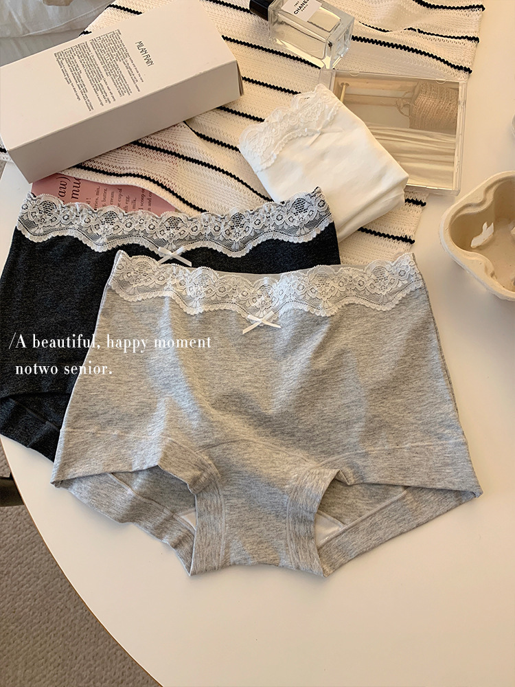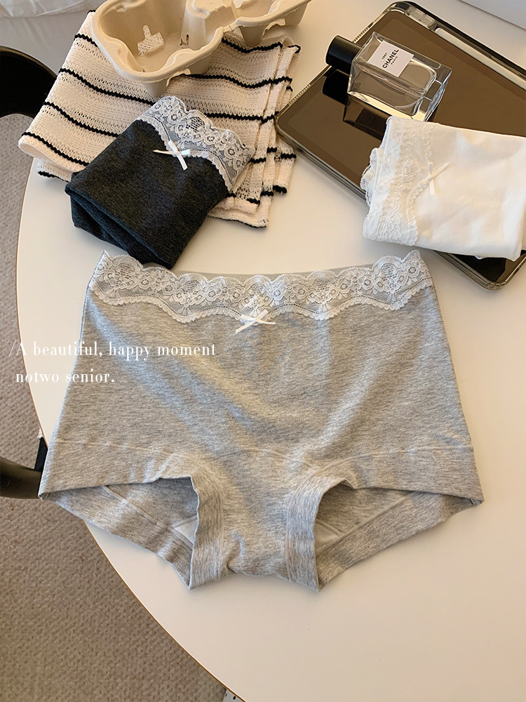透气蕾丝女内裤平角内裤简约风薄棉纯棉蕾丝蝴蝶结加长加宽裆内裤