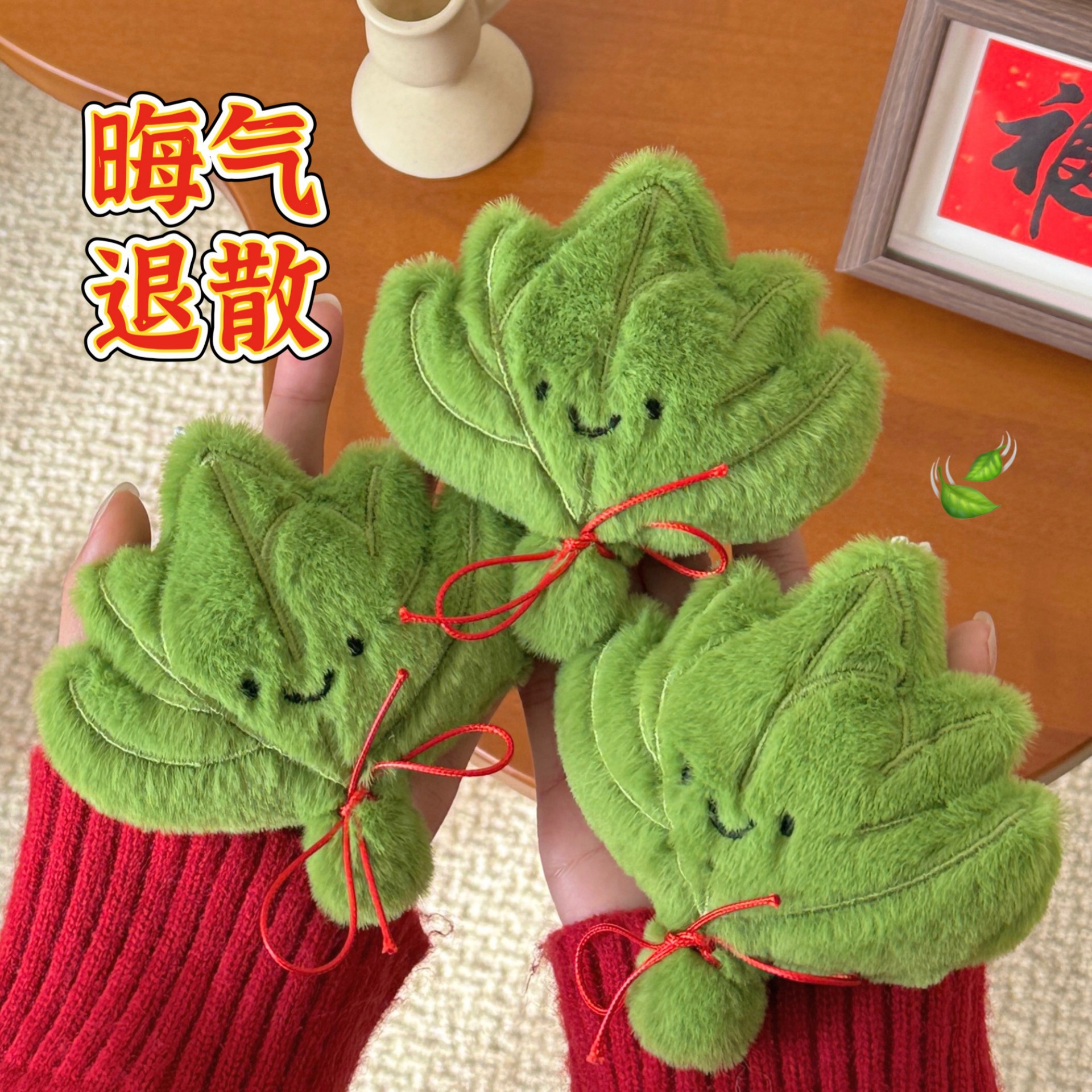 创意柚子叶公仔挂件扇走霉运玩偶挂饰吱吱叫可爱挂坠晦气退散吊坠