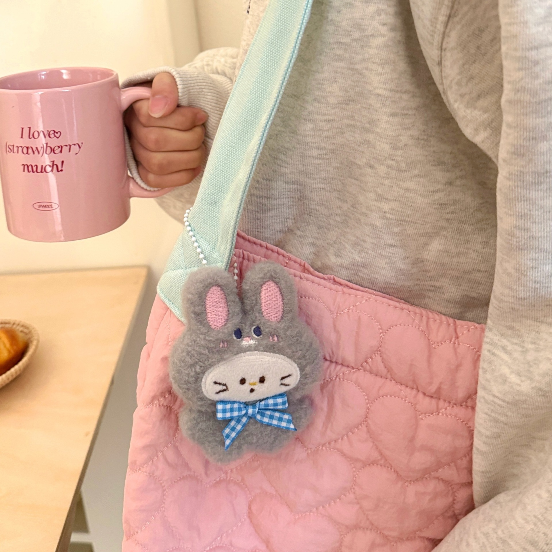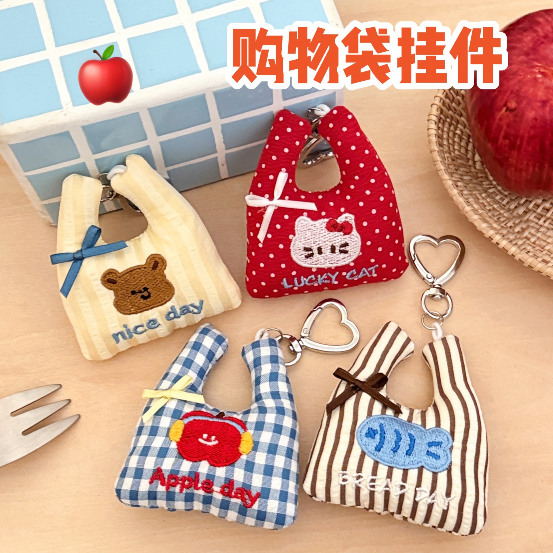 腾亿原创可爱公仔购物袋挂件少女心背包钥匙扣装饰爱心扣玩偶挂坠