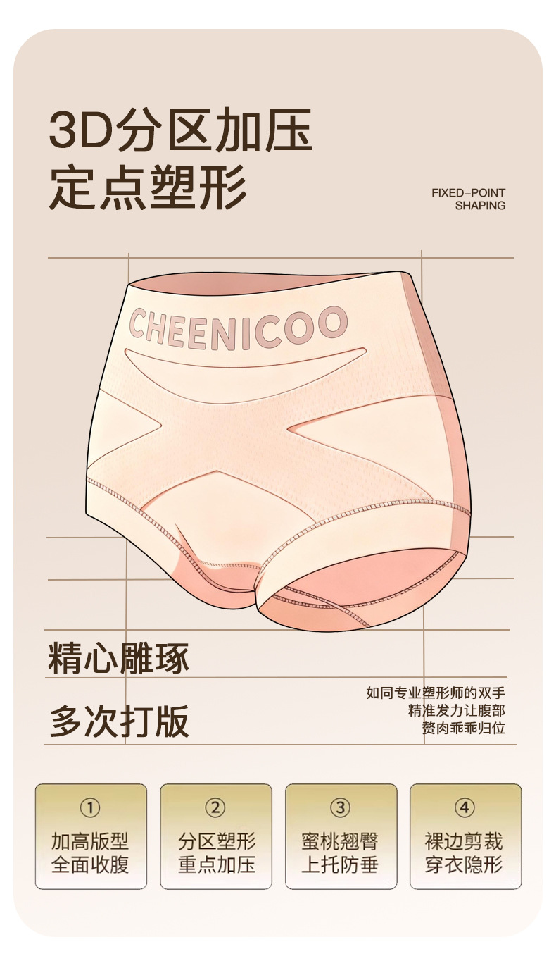 【X微压提臀轻塑裤】粉底液无痕透气高腰产后收腹美体内裤女三角