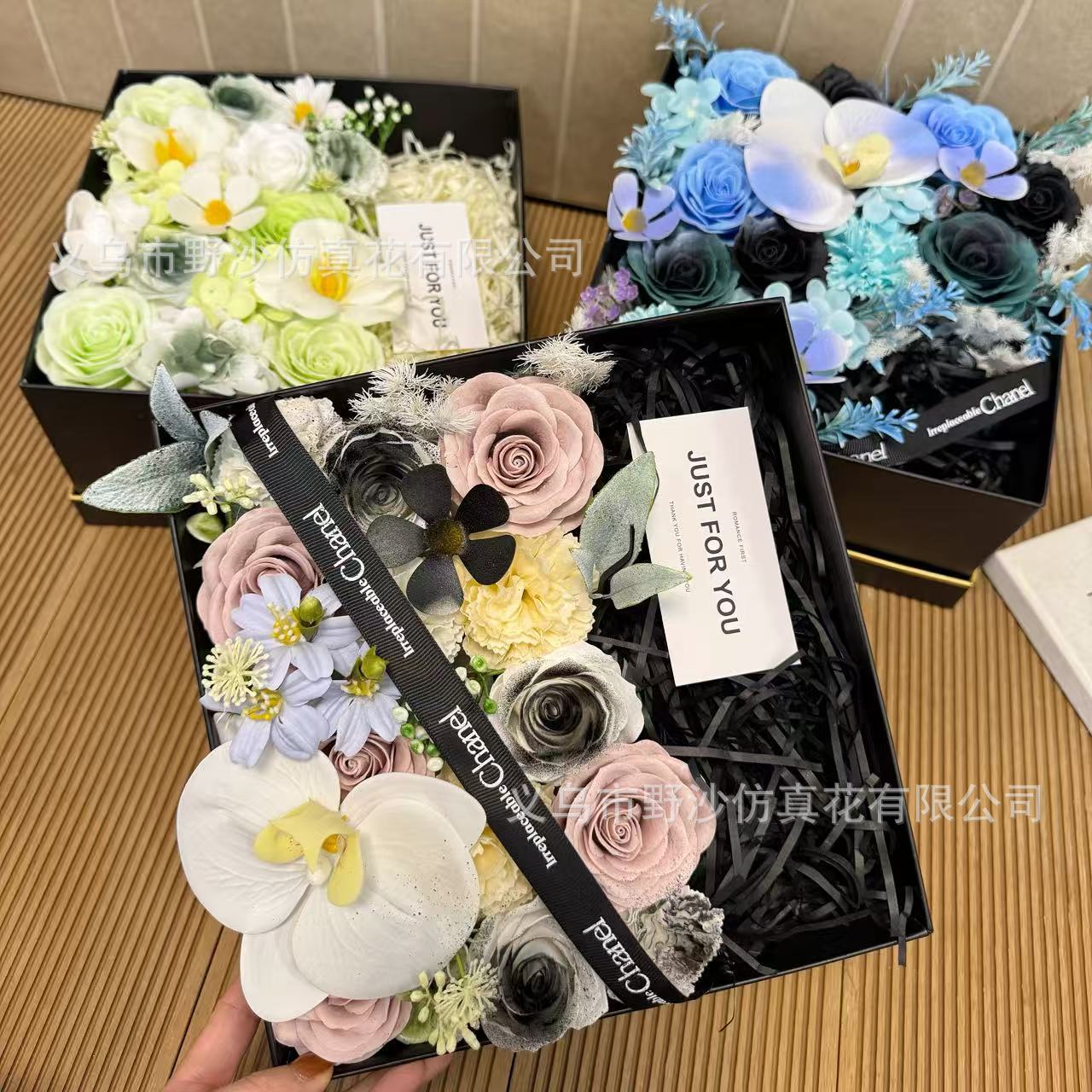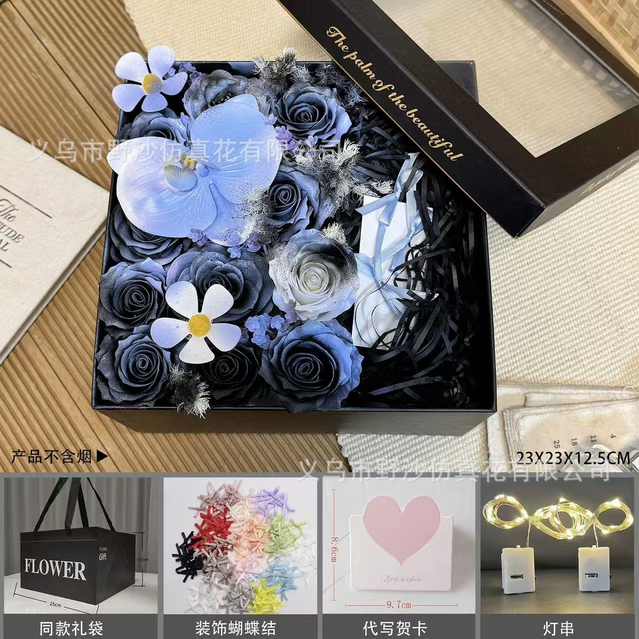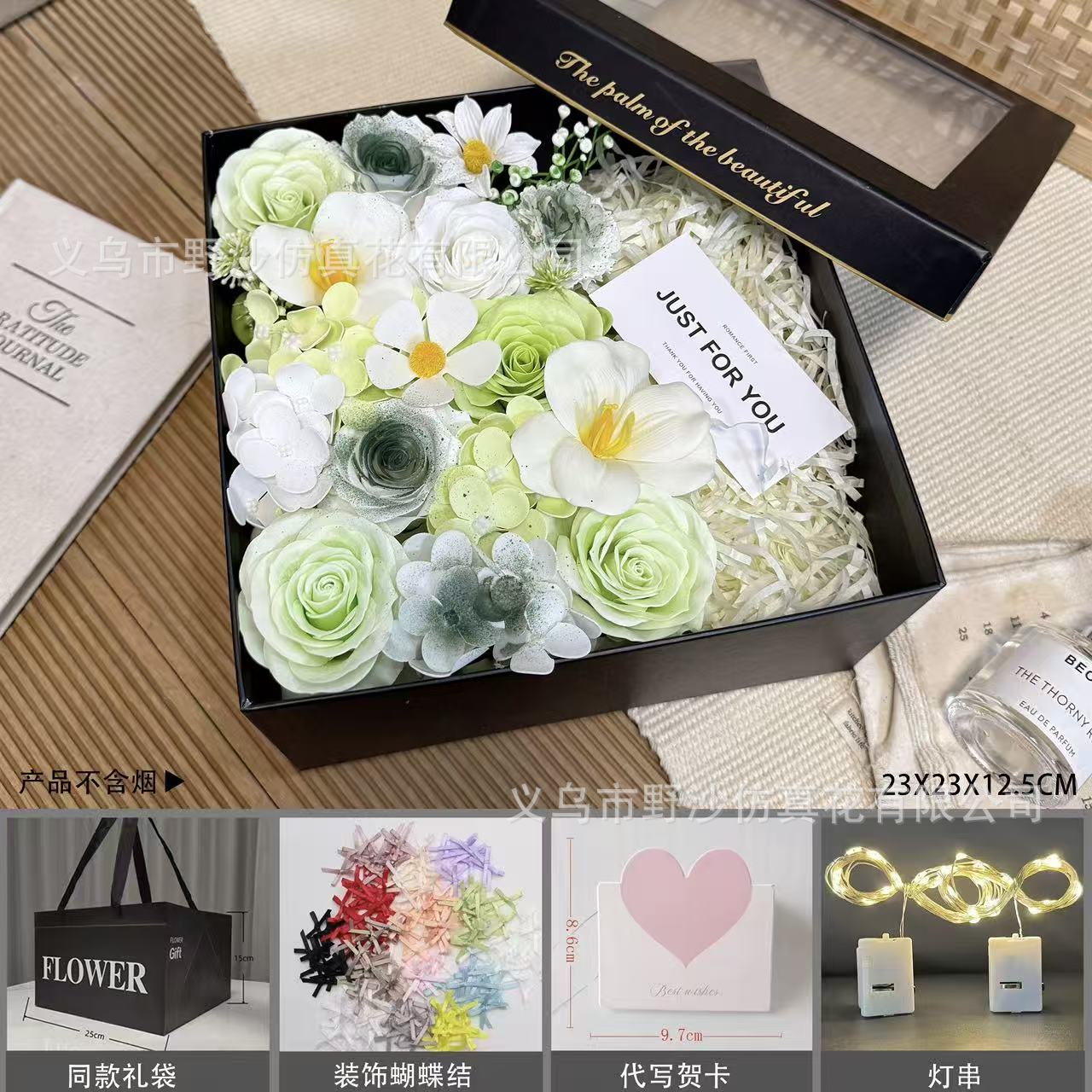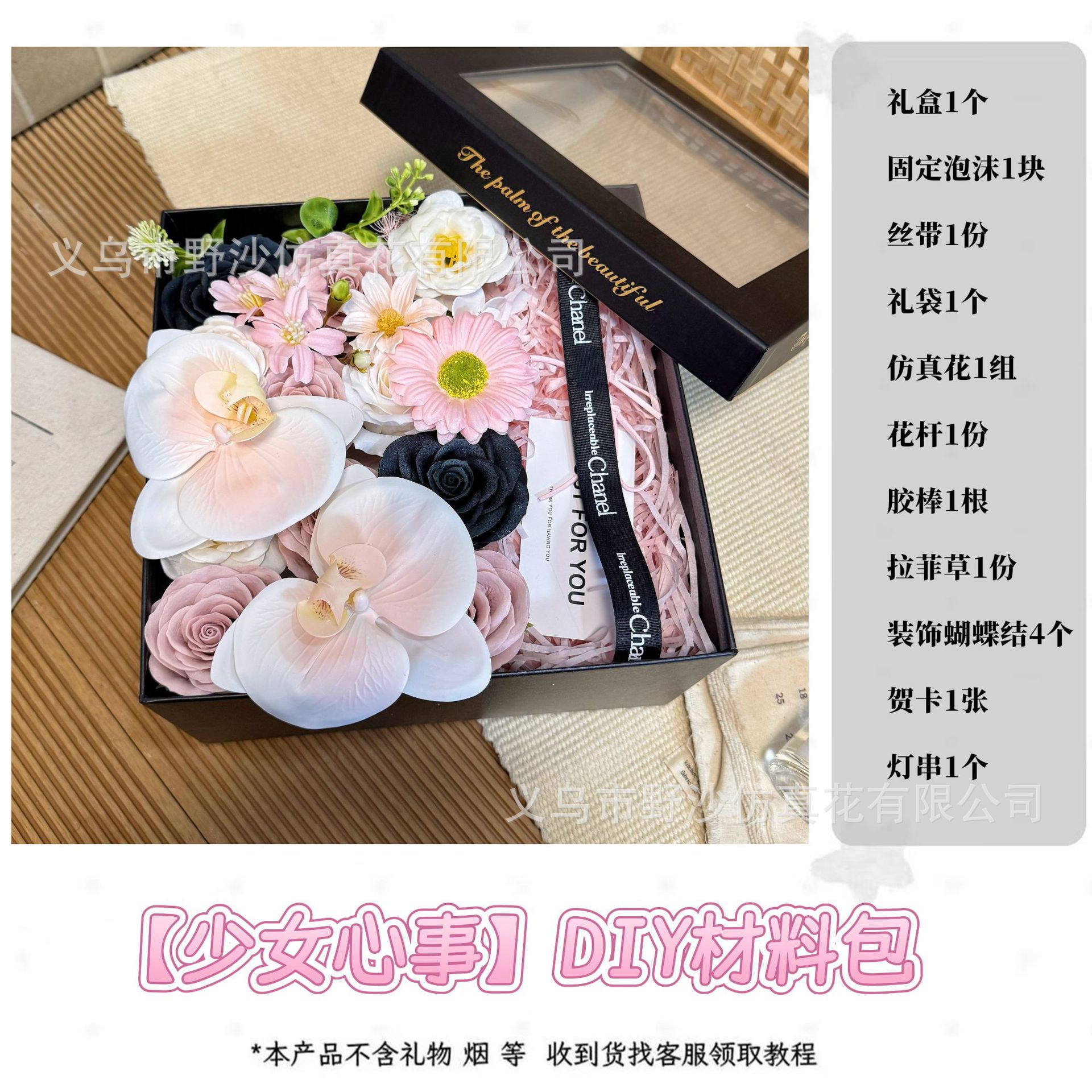 香烟花方形礼盒含仿真花手工DIY材料包情人节送男女生七夕花束