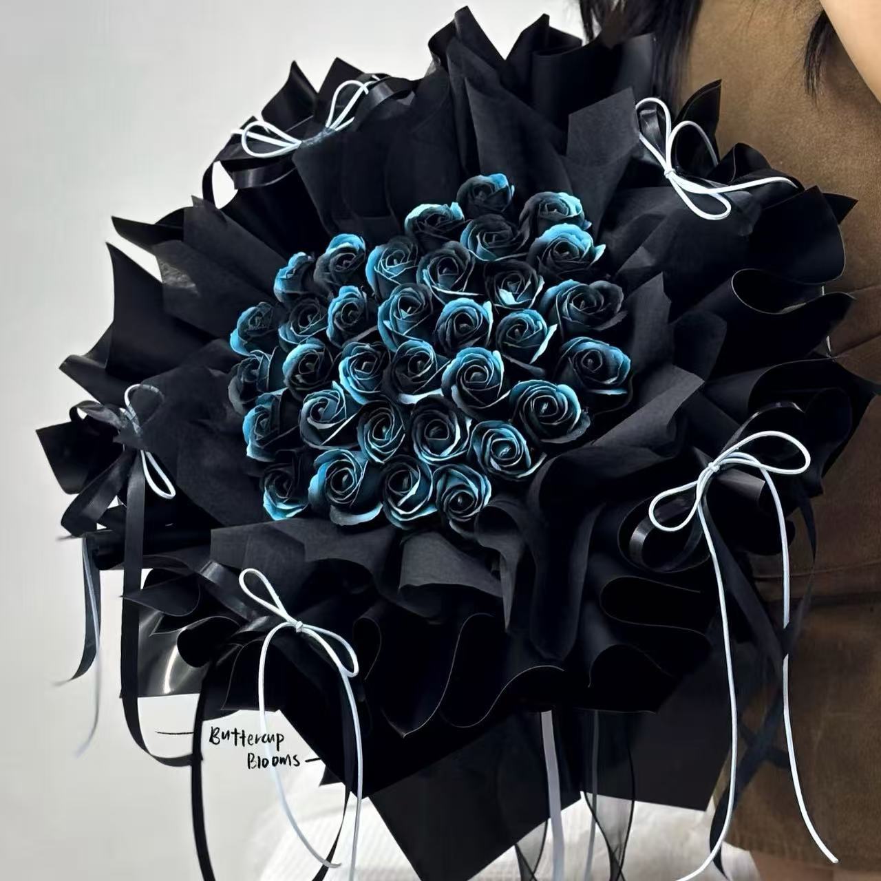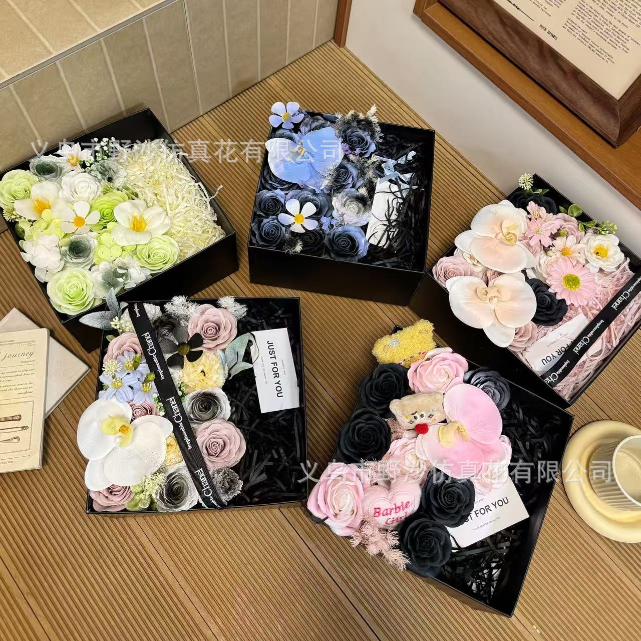 中国のバレンタインデーバレエスタイル黒梅ソースローズブーケソープフラワー模擬花束ガールフレンドの誕生日プレゼント