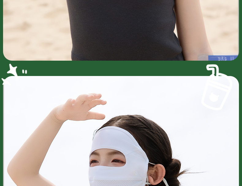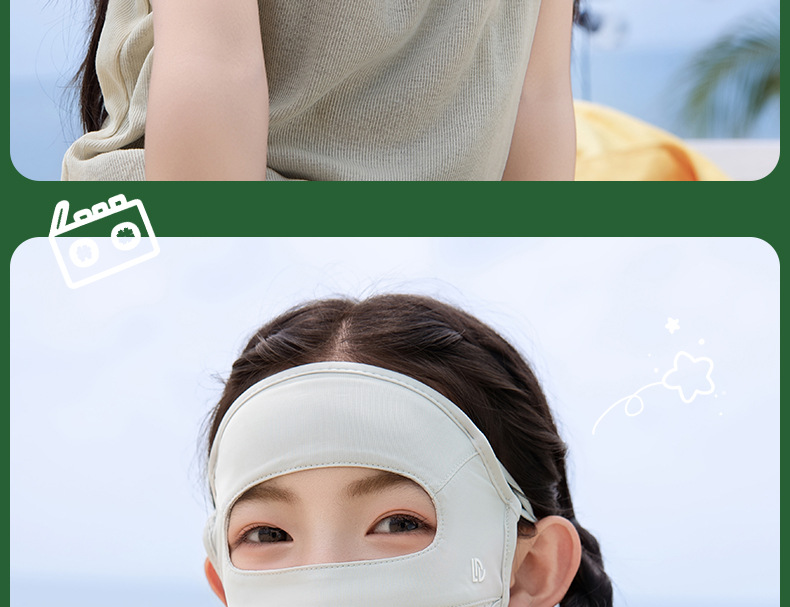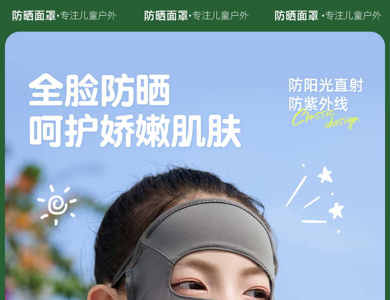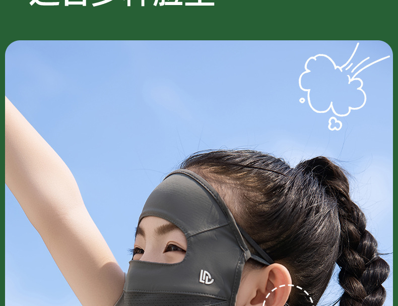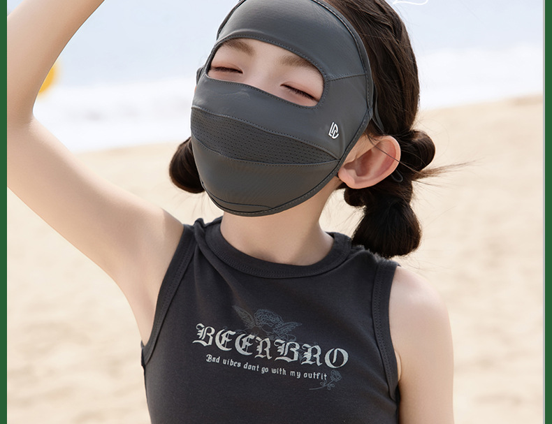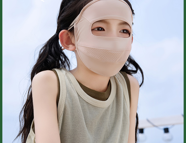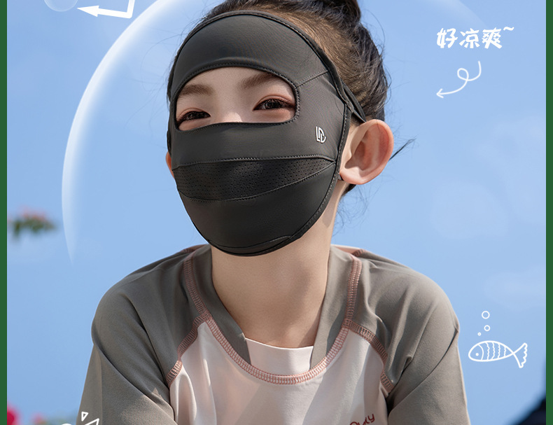 夏季儿童晒眼皮全脸防晒口罩面罩防紫外线遮阳面罩冰丝青少年男女