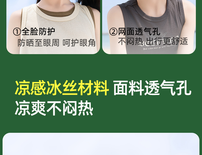 夏用黒色の帽子と一体型フェイスカバー、日焼け止め、サイクリング、紫外線防止、フェイスマスク、女性用、冷感