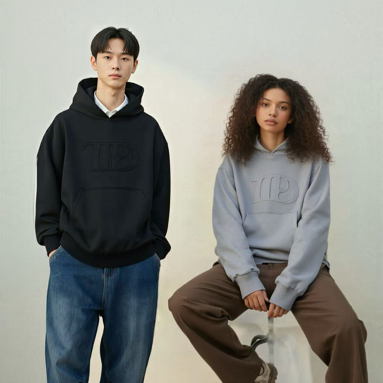 【W1045】可亲子 女士卫衣 男女同款 加绒连帽潮牌卫衣宽松版上衣