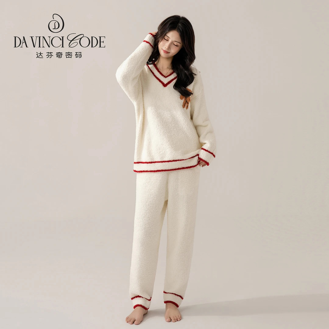 达芬奇密码新款女士甜心欧蕾法兰绒睡衣秋冬加绒加厚家居服套装女