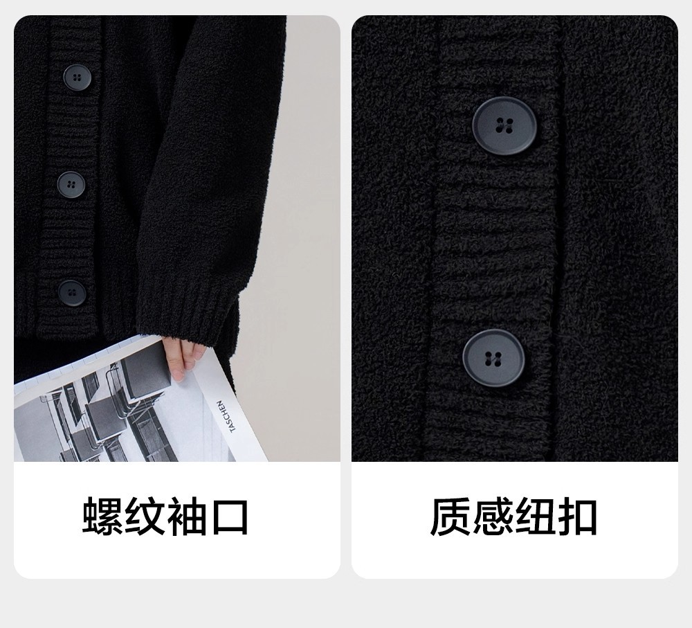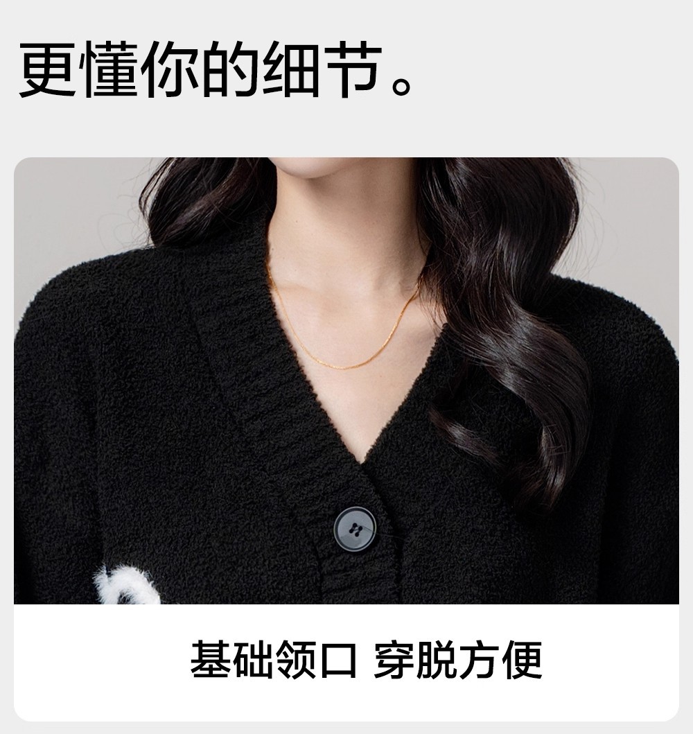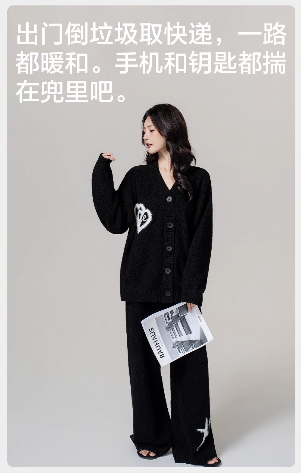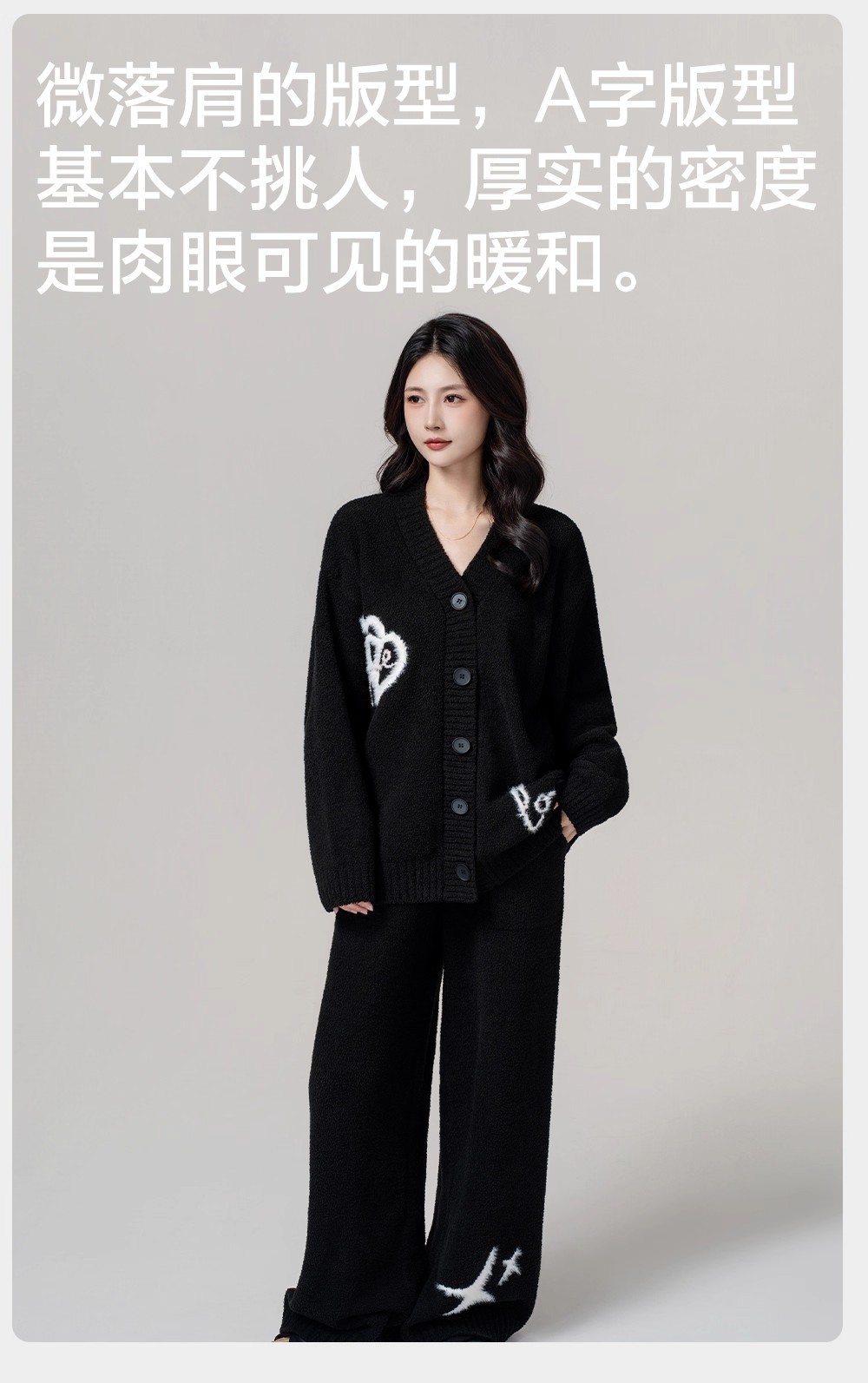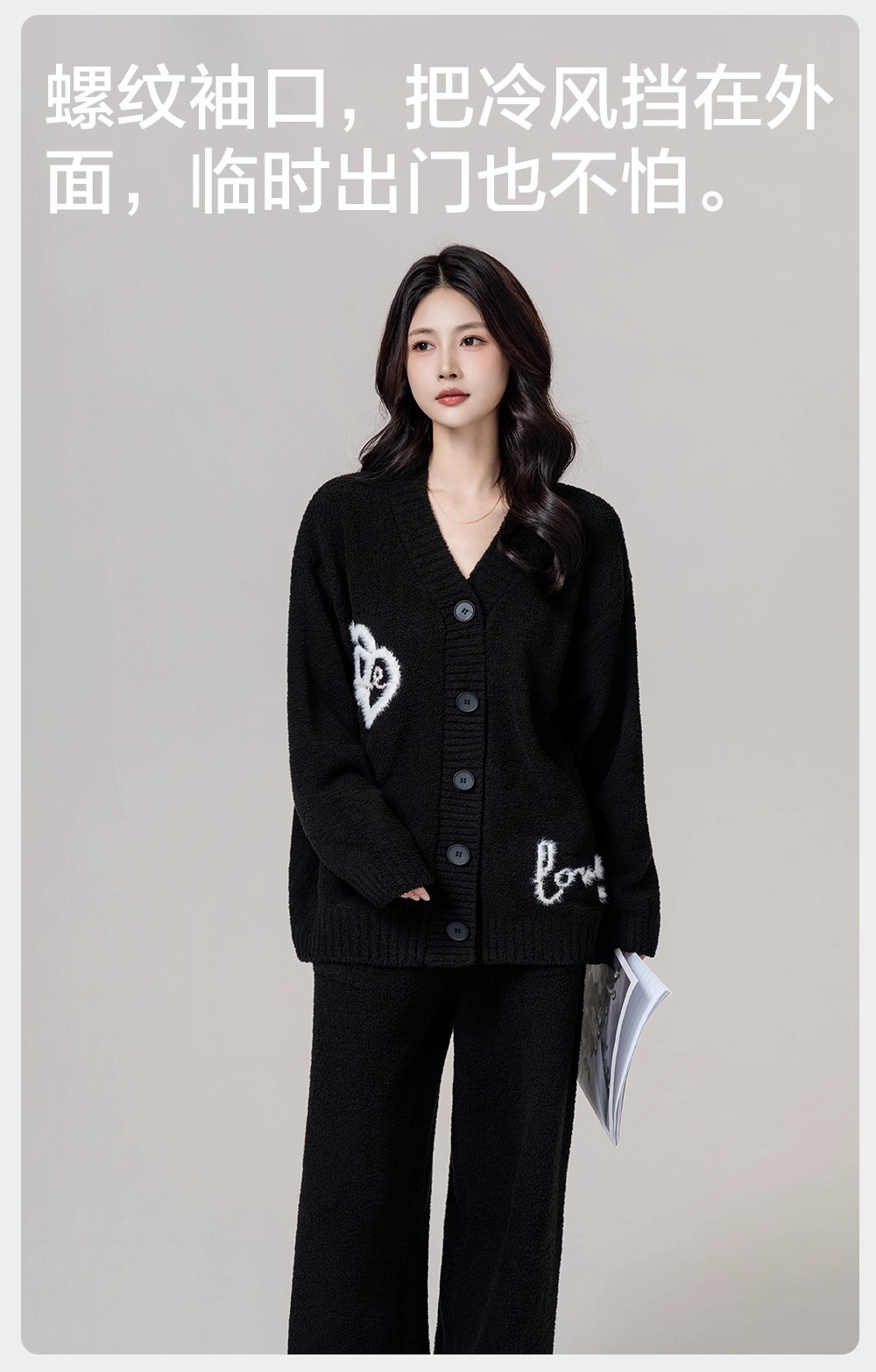 达芬奇密码秋冬新款睡衣女半边绒加厚针织毛衫粉黑开衫保暖家居服