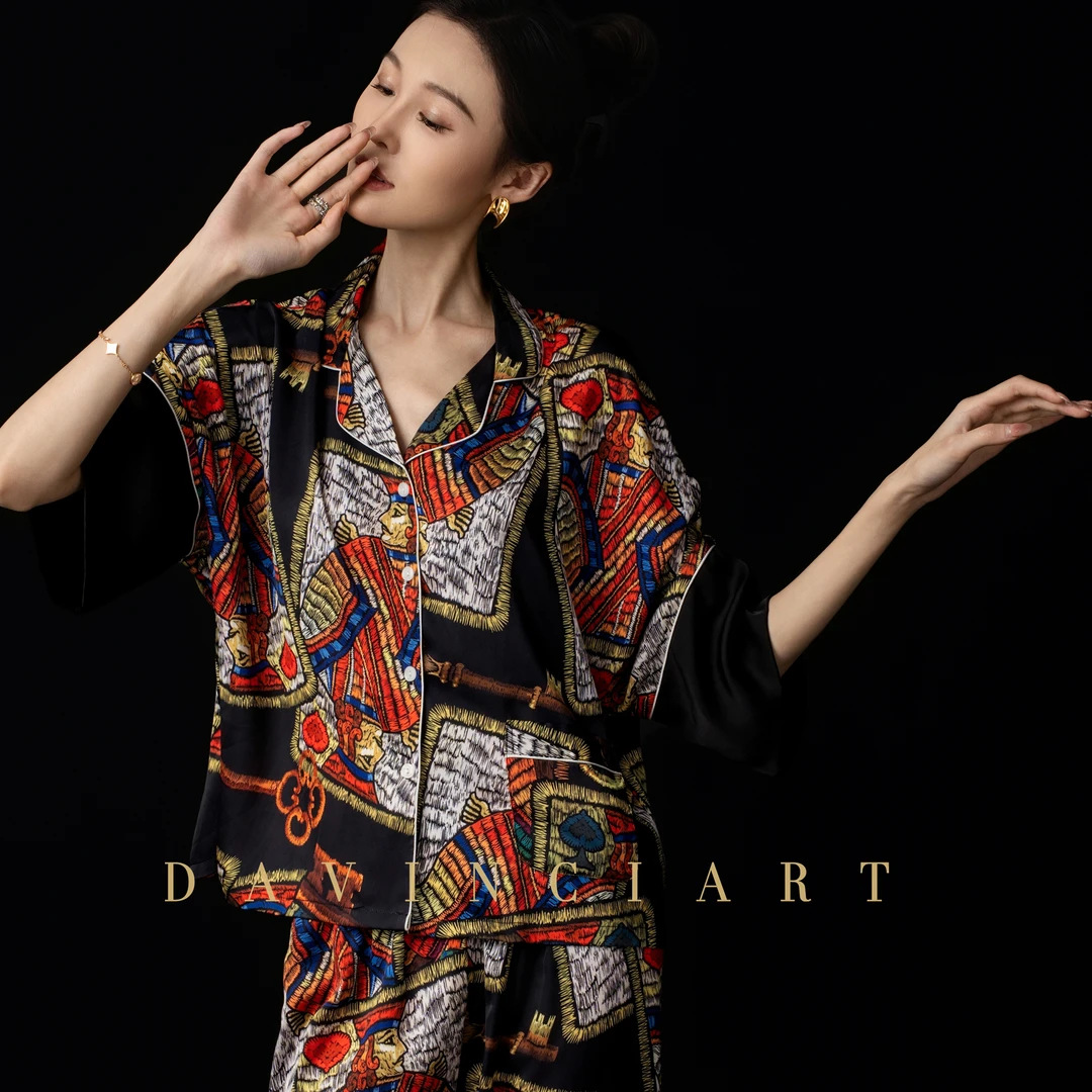 达芬奇密码夏季新款套装罗兰之歌七分袖宽松女士家居服印花套装