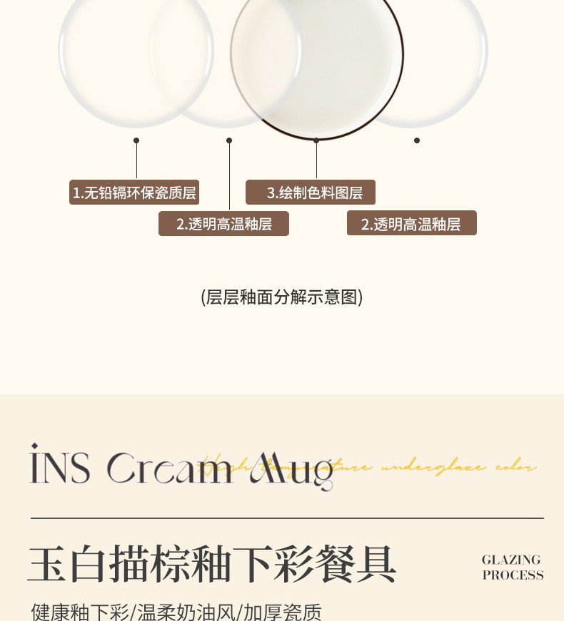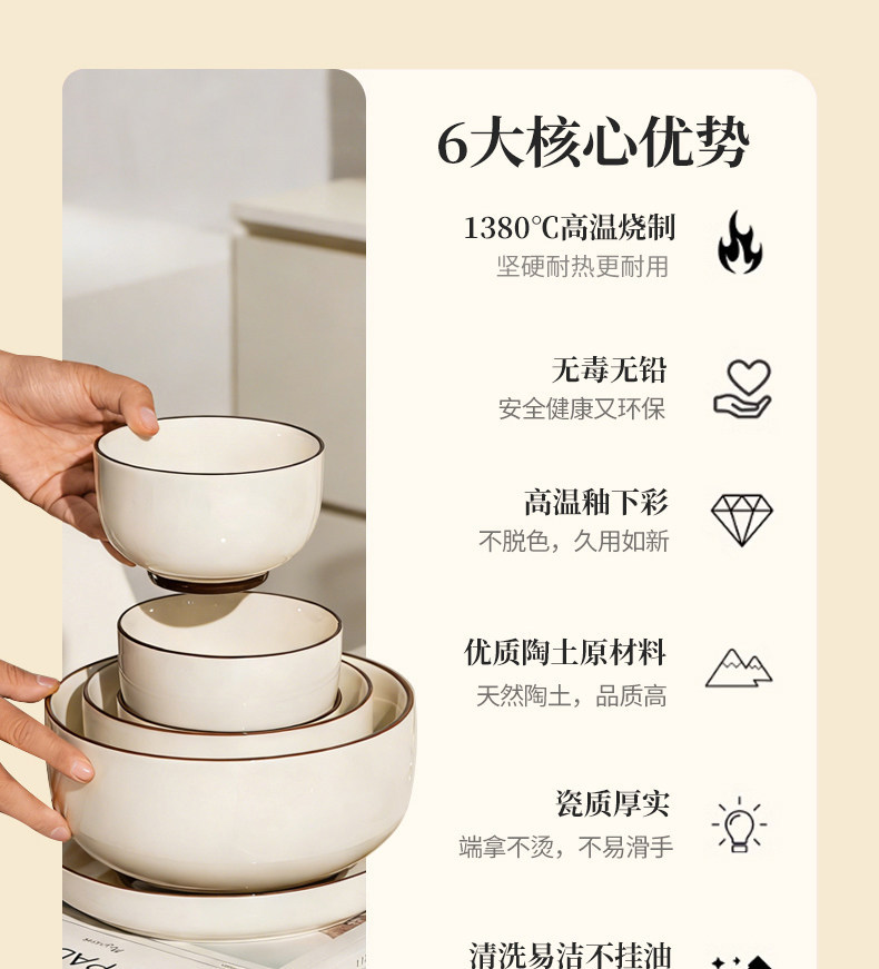釉下彩奶油风陶瓷饭碗家用米饭碗高颜值网红碗面碗汤碗吃饭碗餐具