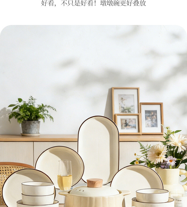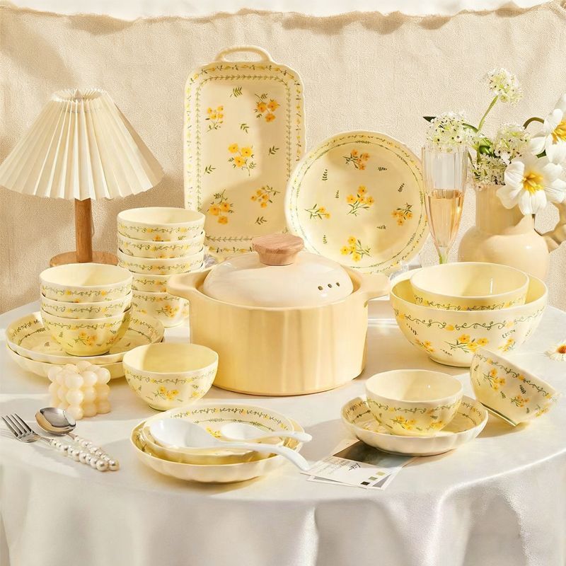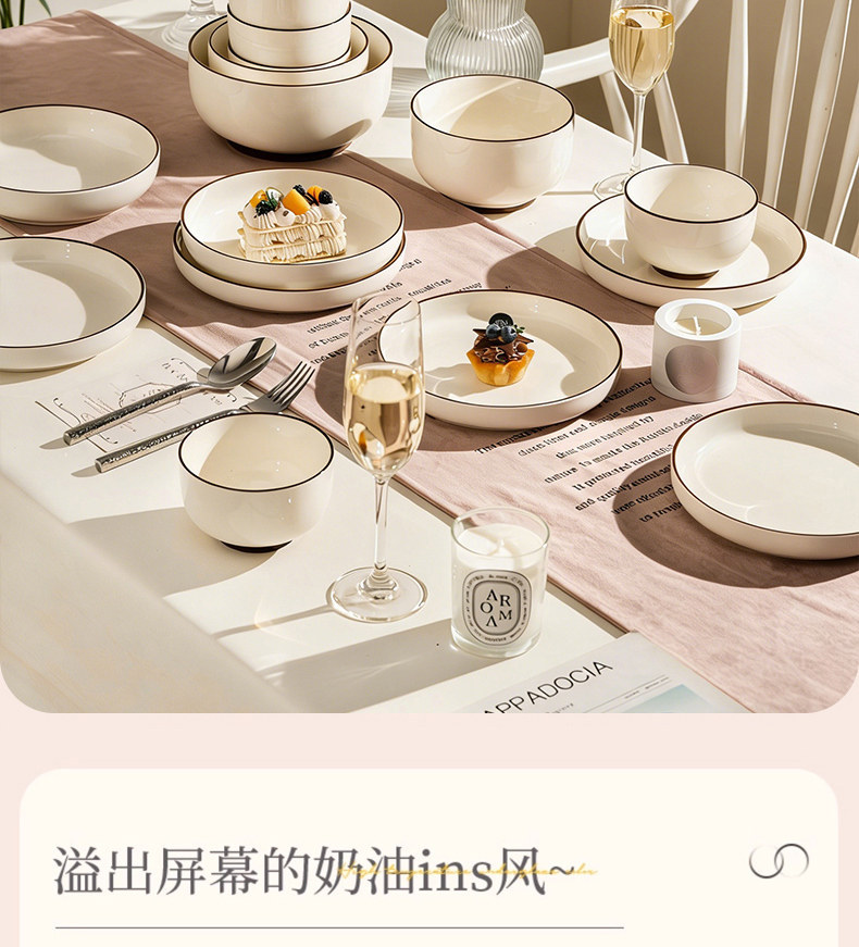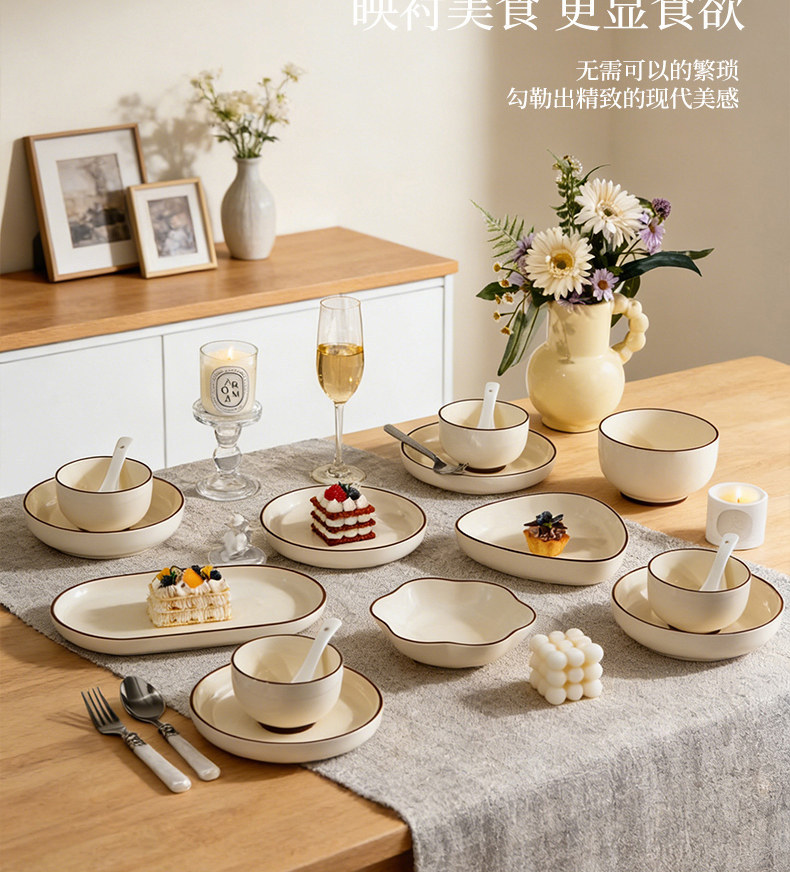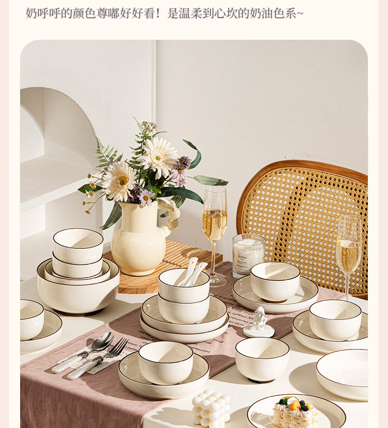 釉下彩餐具套装2026新款高颜值碗碟套装家用奶油风碗盘筷乔迁碗具
