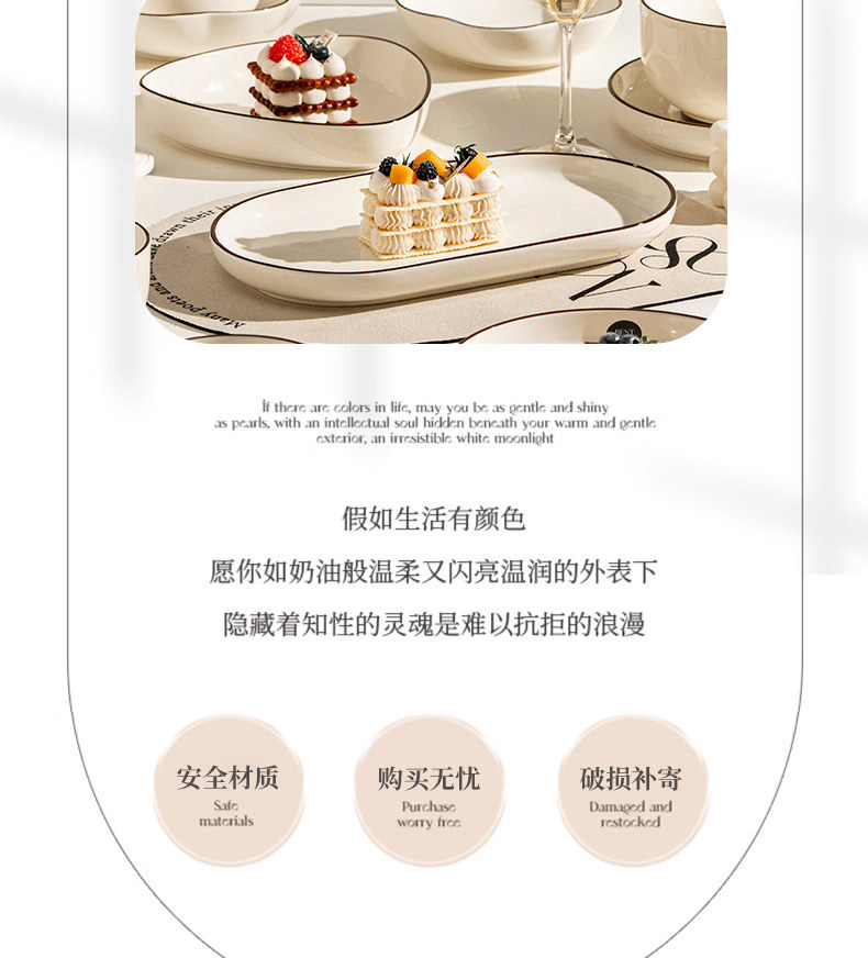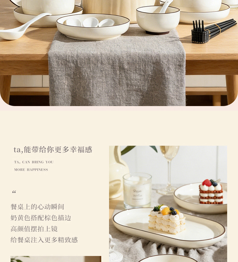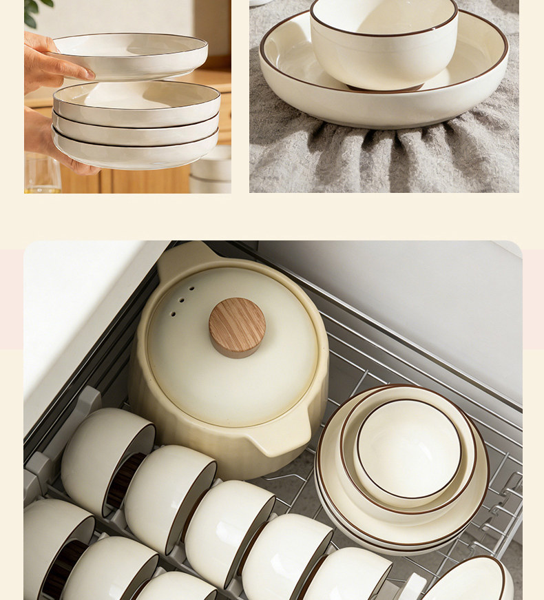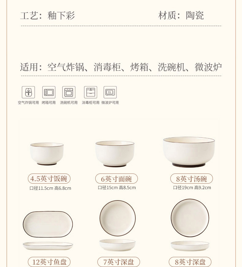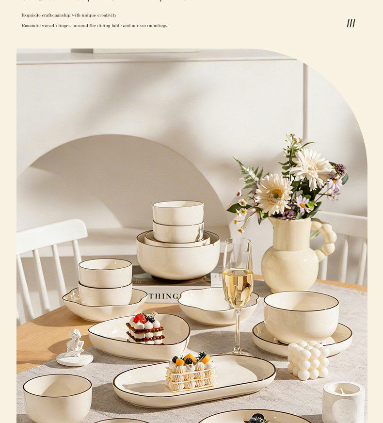 釉下彩餐具套装2026新款高颜值碗碟套装家用奶油风碗盘筷乔迁碗具