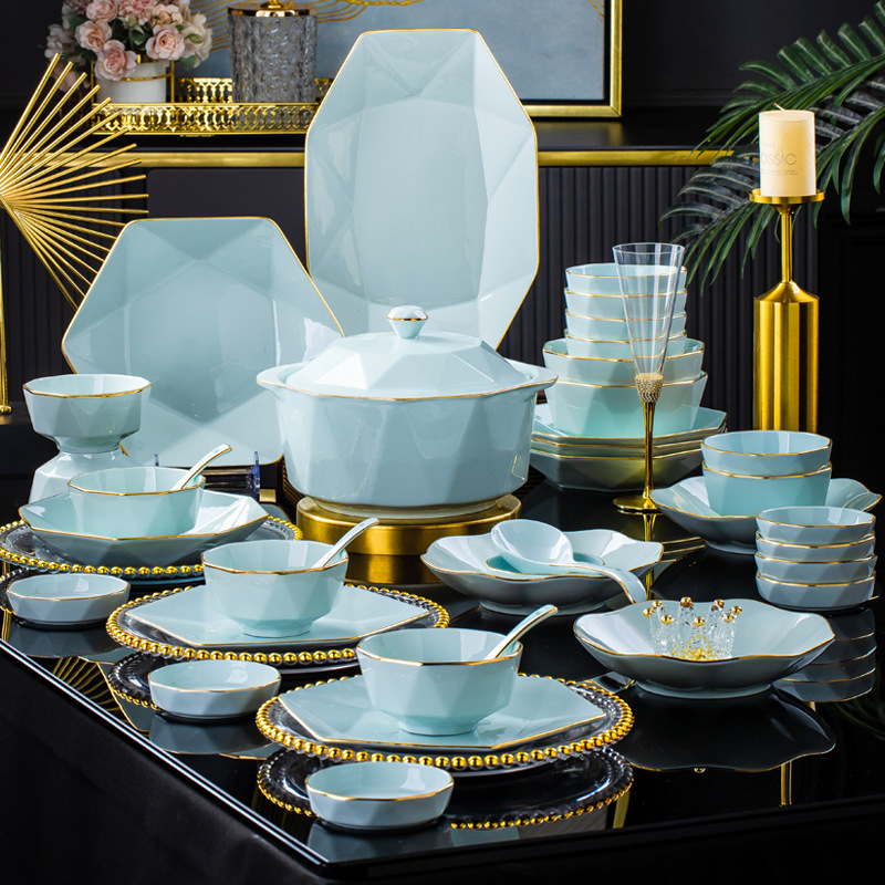シンプルなヨーロッパ式金線陶磁器食器皿ホテル家庭用食器セットdiy景徳鎮手作り描金