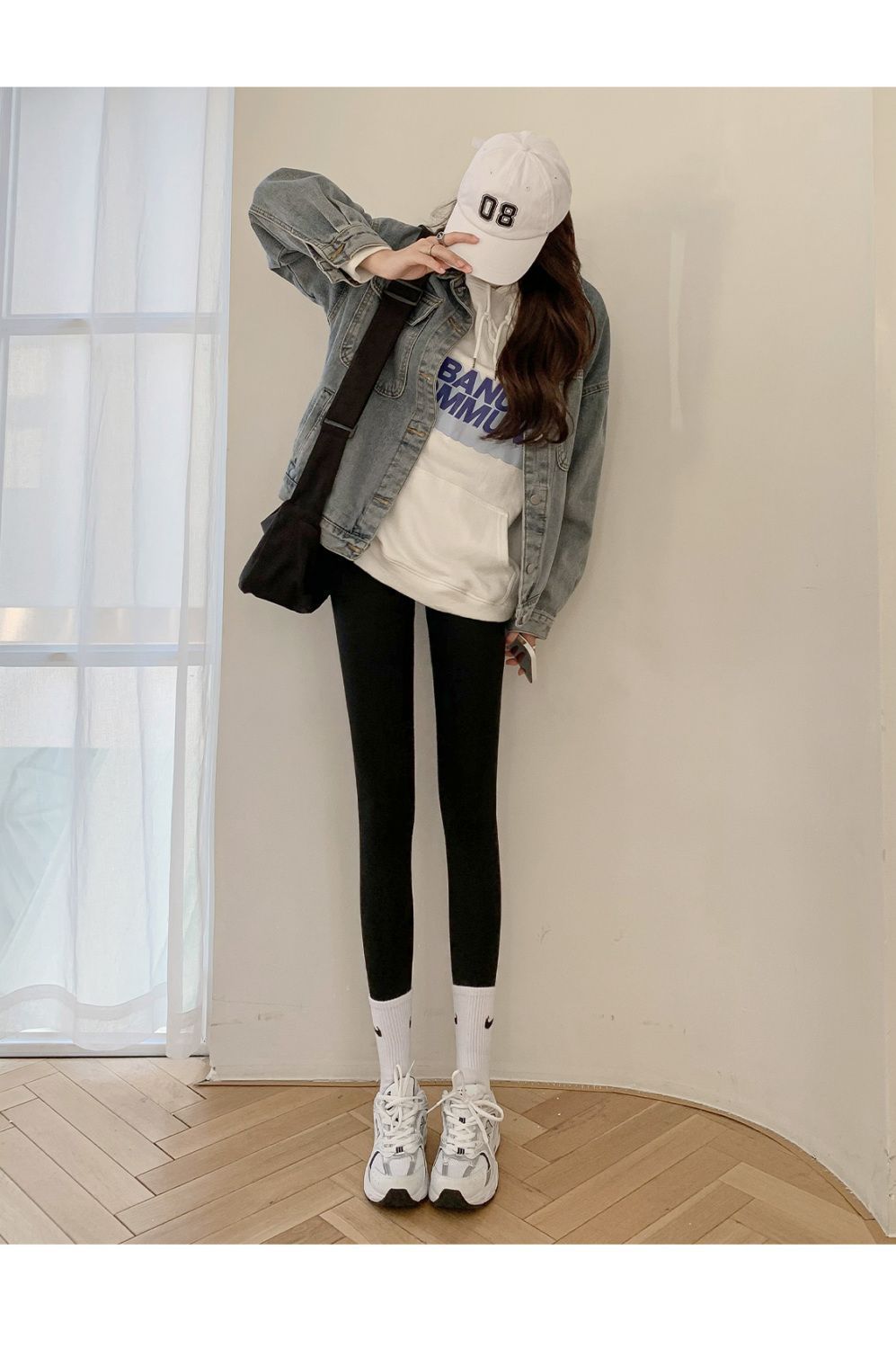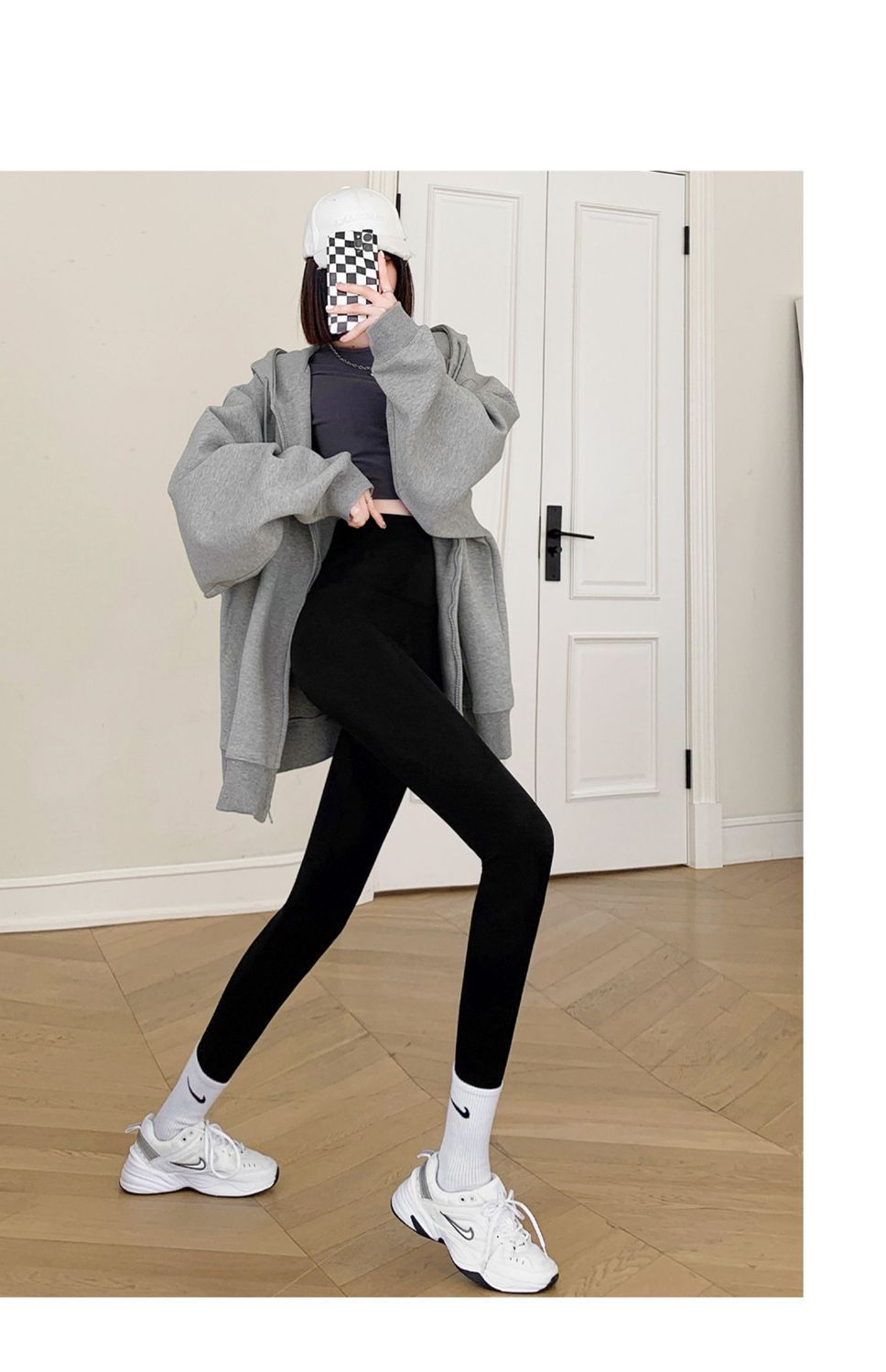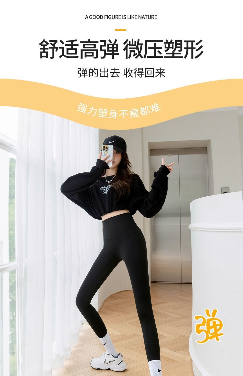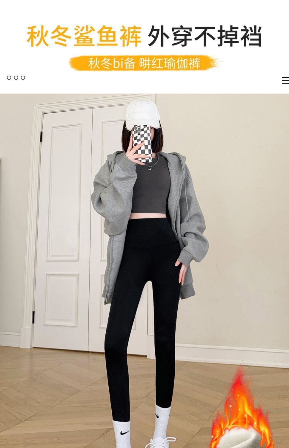【】女性用シャークパンツ、春秋ヨガタイト、ハイウエスト、痩身、秋冬ベルベット黒レギンス、ヒップアップ