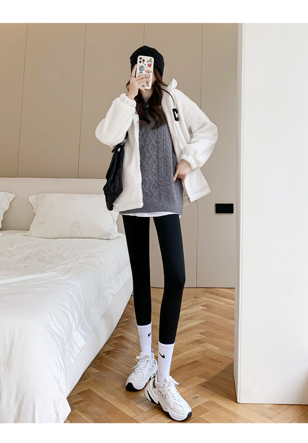 源头无尴尬线加绒鲨鱼裤冬季外穿高腰收腹羊羔绒加厚九分瑜伽代发