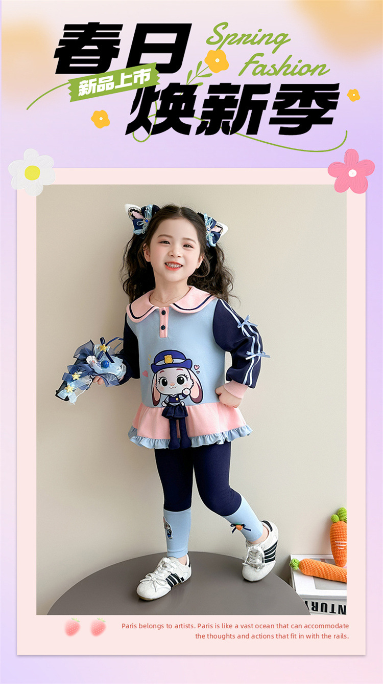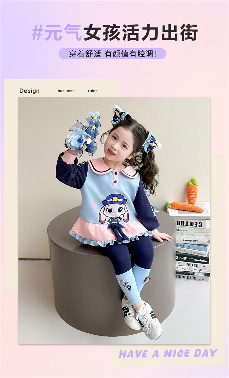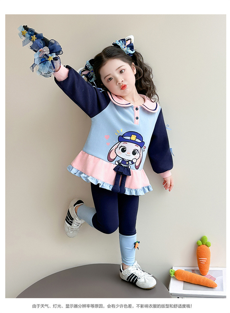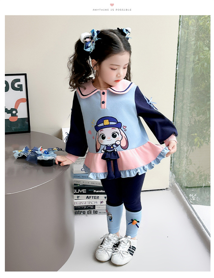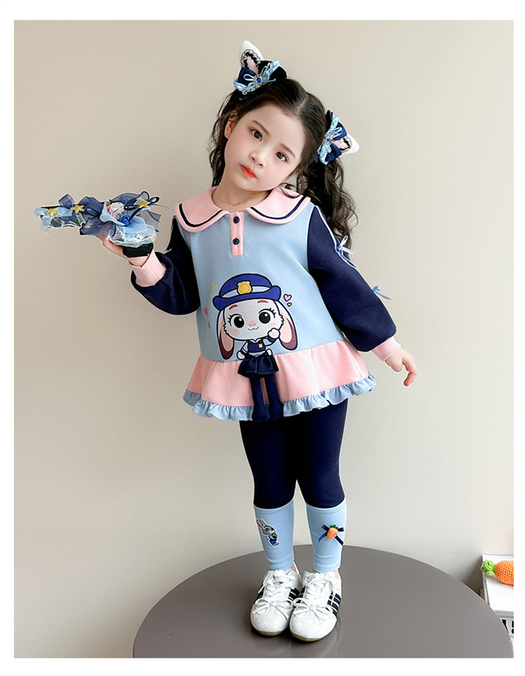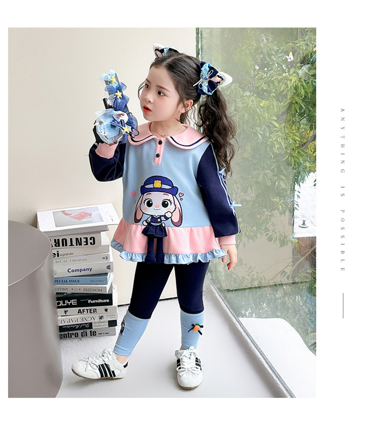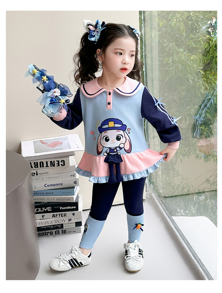 女童卡通卫衣套装春秋季2026新款儿童洋气兔子警官宝宝休闲两件套