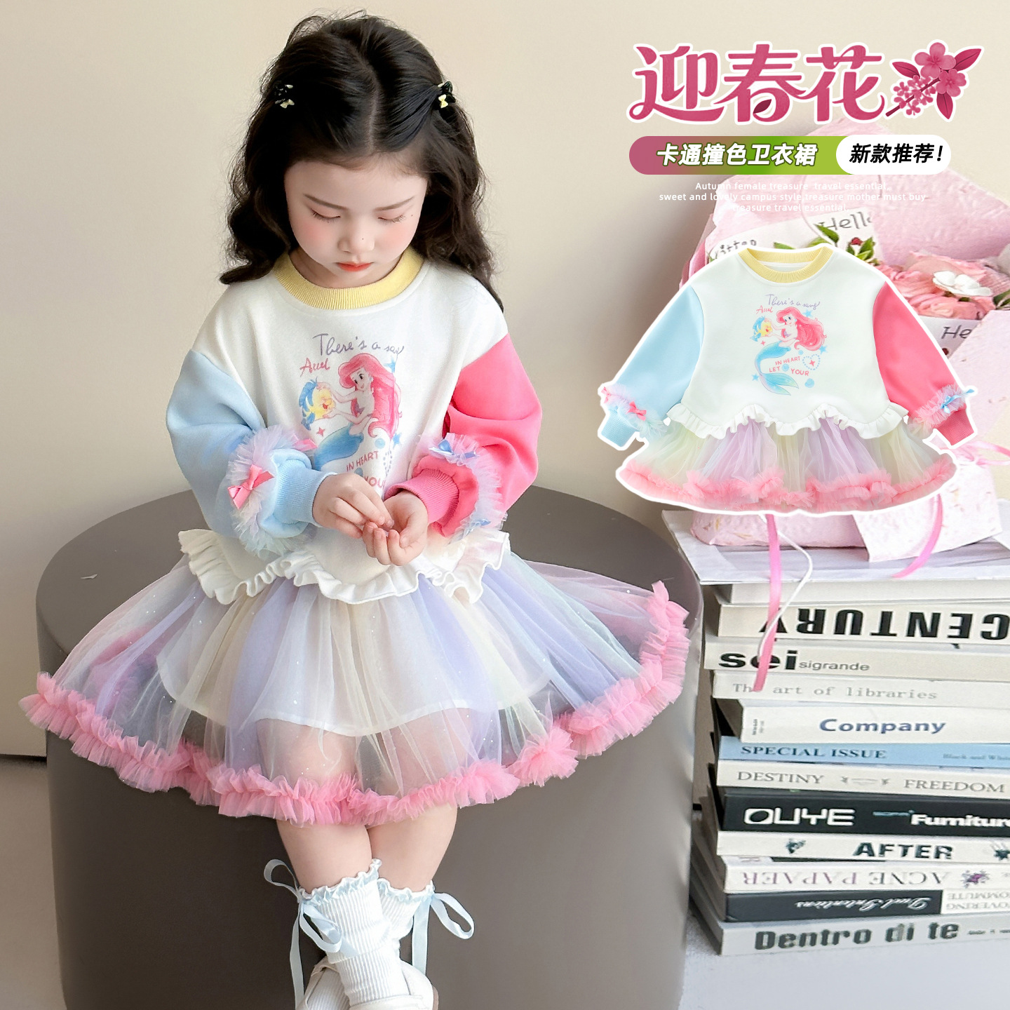 女童连衣裙洋气儿童拼接网纱公主裙秋装2026新款女孩春秋季卫衣裙