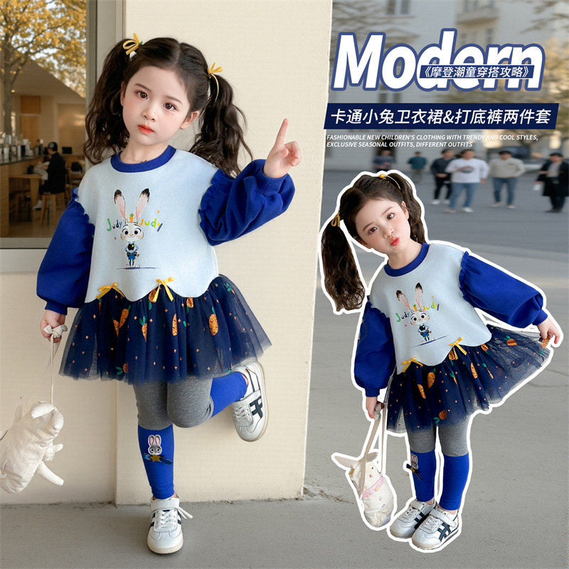 女童春装洋气套装2026新款儿童兔子警官卫衣网纱裙宝宝春秋打底裤