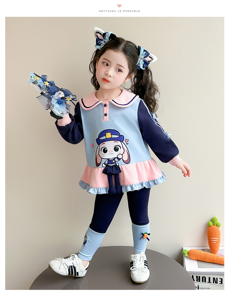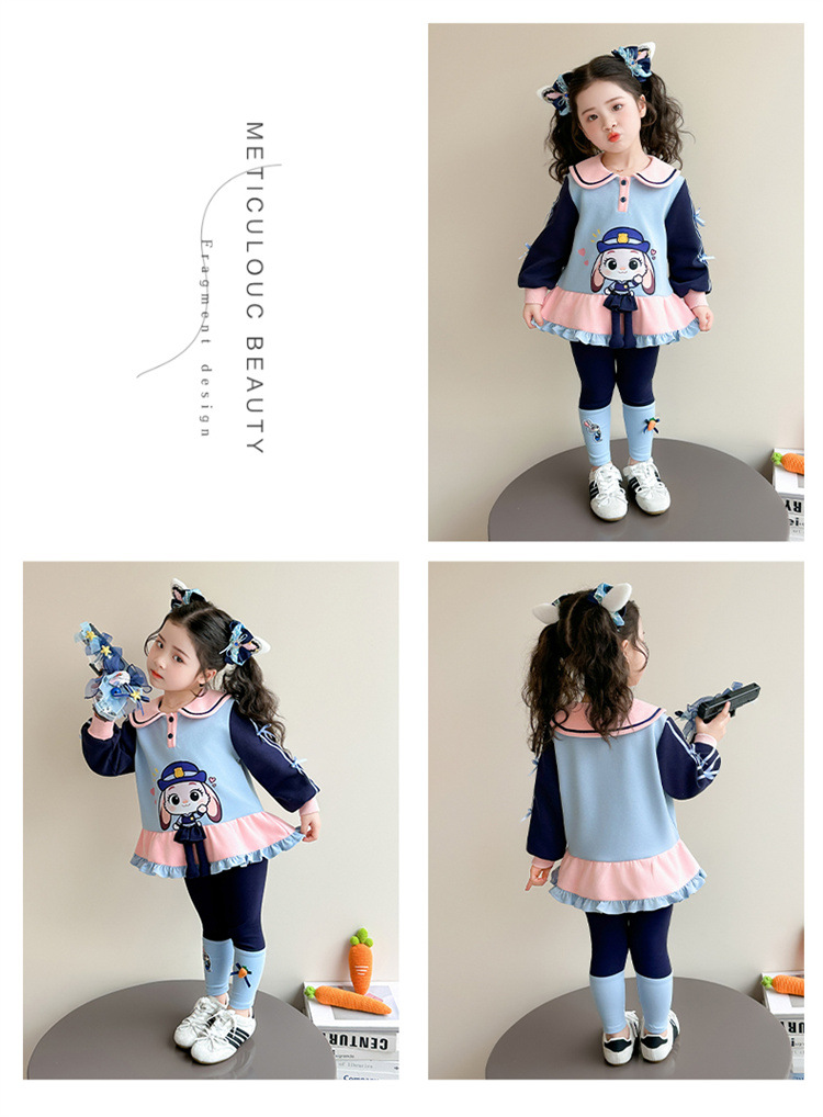 ウサギの警察官の服の子供のスカートの2024の新型の洋気の女の子のジュディのワンピースの女の子の秋の服のjkのスーツ