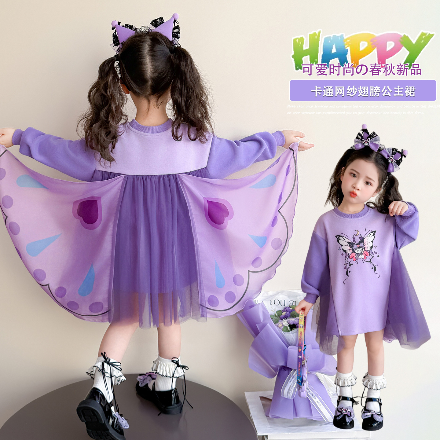 女童连衣裙春季女孩洋气蝴蝶裙子2026新款春秋宝宝翅膀飞袖公主裙